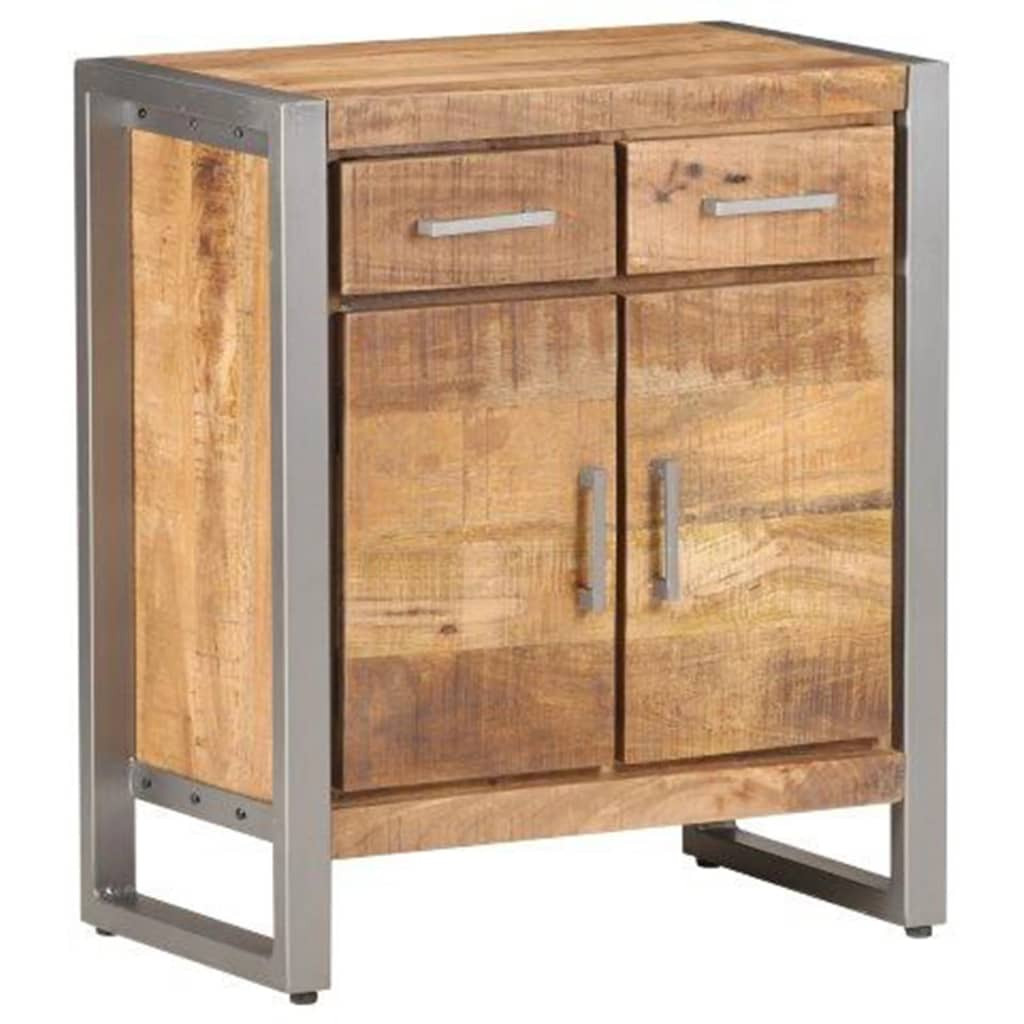A kisszekrény nyers mangófából, egy trópusi keményfából készült, amely elbírja a ránehezedő súlyt, és időtálló is, így stabil és tartós. A vasváz tovább növeli stabilitását. A szekrény két fiókja és két ajtaja bőséges tárolóhelyet biztosít. Emellett a masszív lapjára dísztárgyakat, például képkereteket, cserepes növényeket, vázákat stb. helyezhet.