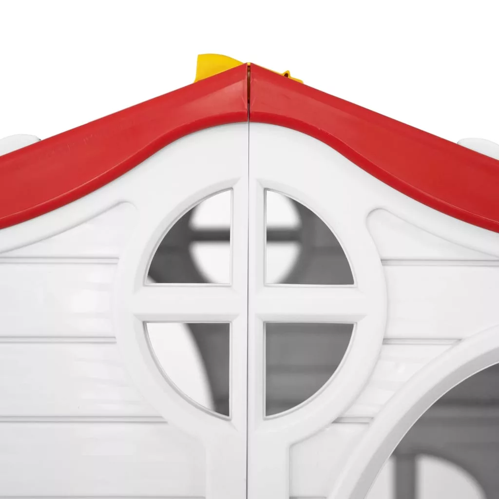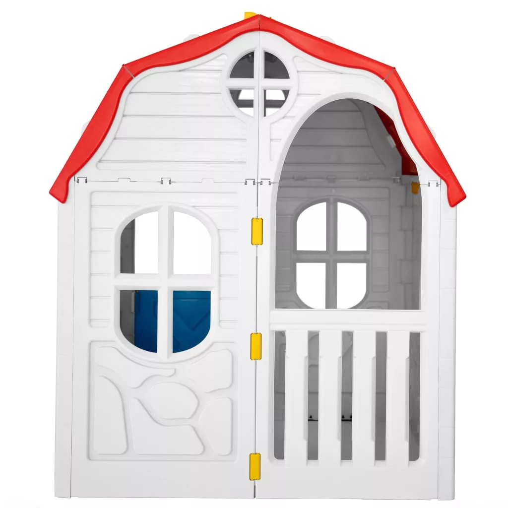 A kunyhószerű ház élénk színekkel, cseréptetővel, nyitott ablakokkal, egyenetlen faltextúrákkal és zárható ajtóval rendelkezik. A játszóház UV- és időjárásálló műanyagból készült, amely nem mérgező, szagtalan és tartós. Használható bel- vagy kültéren is.