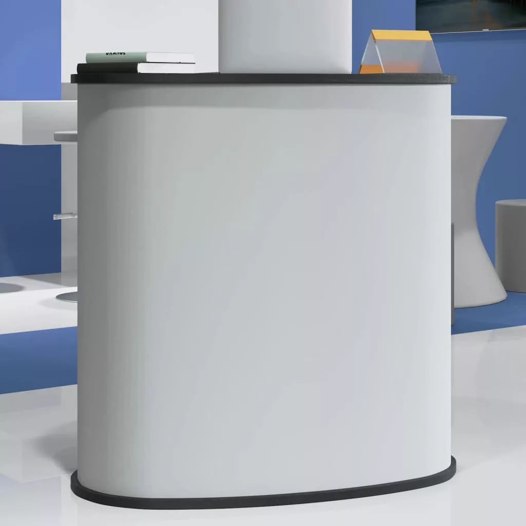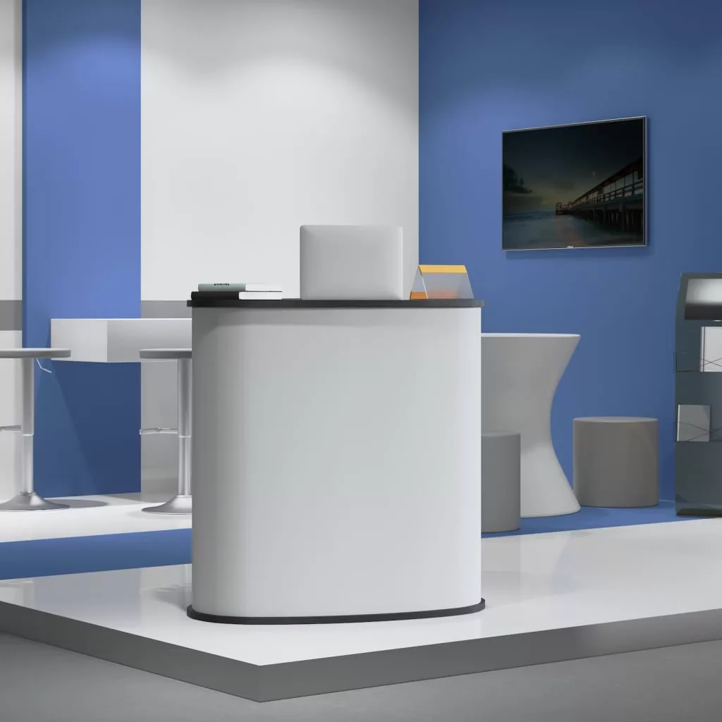 Ez a hordozható kiállítási pult egyszerű és gyors megoldást kínál a promóciós tevékenységek, a termékbemutatók, és a szóbeli bemutatók testreszabásához.