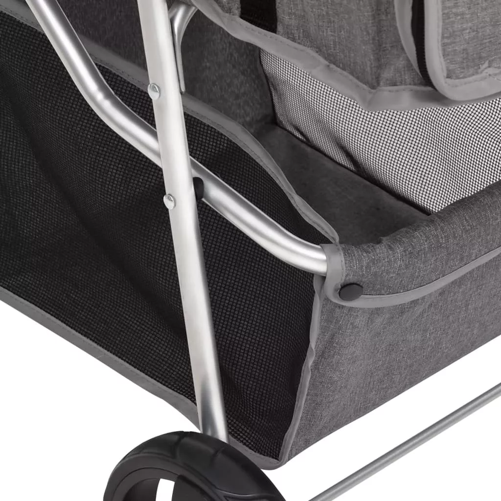 - Praktikus kerekek: Az első kerekek minden irányba forgathatók a könnyű mozgás érdekében, míg a hátsó kerekek fékkel segítenek a kiskutya babakocsi rögzítésében, ha szükséges.