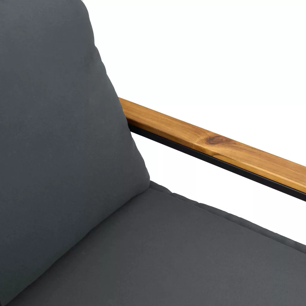 - Tömör akácfa karfák: A karfák masszív akácfából készültek, ami erőt ad a pihenéshez és növeli a pad tartósságát is. Ez az anyag a vizuális vonzerőt ötvözi a robosztussal, így tökéletes kültéri élvezetre hosszú távon.