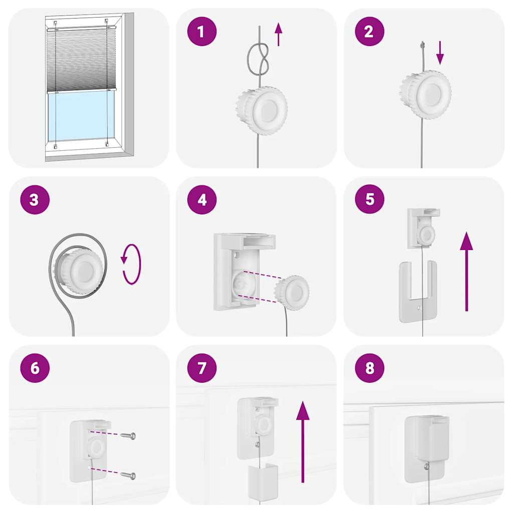 - Két összeszerelési mód: A pliszéfüggönyt az Ön igényeitől függően csavarokkal vagy fúrás nélkül rögzítheti a falhoz vagy az ablakhoz rögzítő konzolok segítségével.