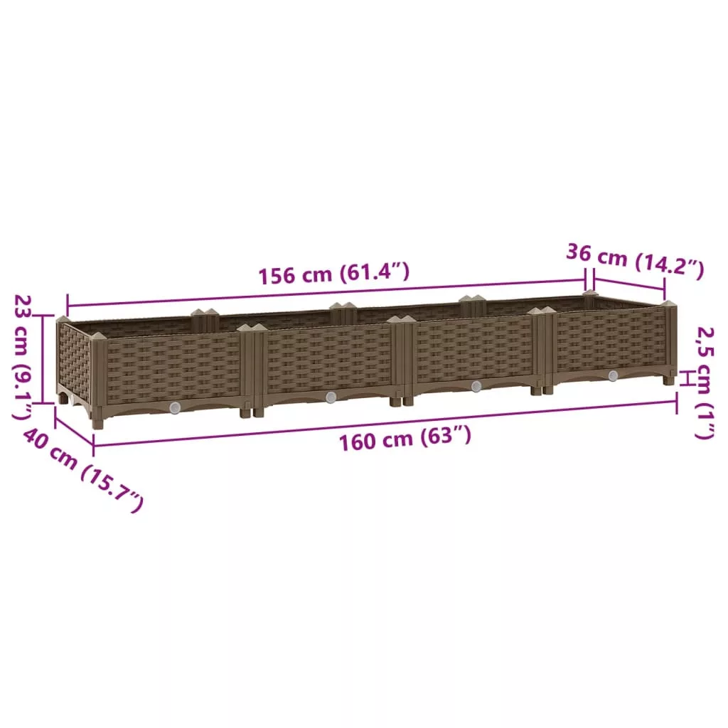 Az ültető polipropilénből készült, így masszív, strapabíró és napi kültéri használatra alkalmas. A kerti edény elég mély és széles ahhoz, hogy nagy mennyiségű talaj férjen el benne, és bőséges helyet biztosít növényeinek, zöldségeinek, fűszernövényeinek és virágainak. Hozzon létre bájos környezetet növényeinek ezzel az elegáns ültetővel!