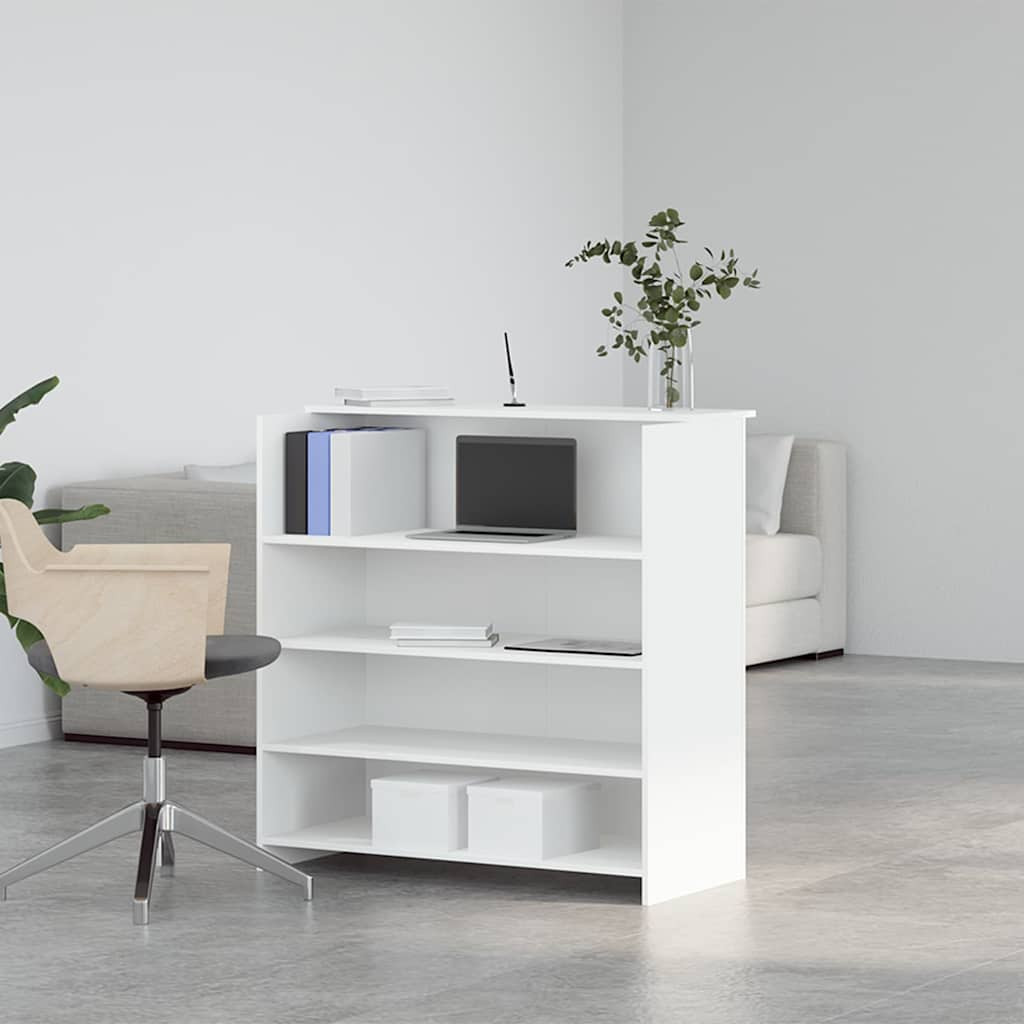 - Integrált tárolási megoldások: A recepciós pult beépített polcokkal rendelkezik, amelyek bőséges helyet biztosítanak irodaszerek, dokumentumok és személyes tárgyak tárolására, segítve a munkaterület rendszerezését.