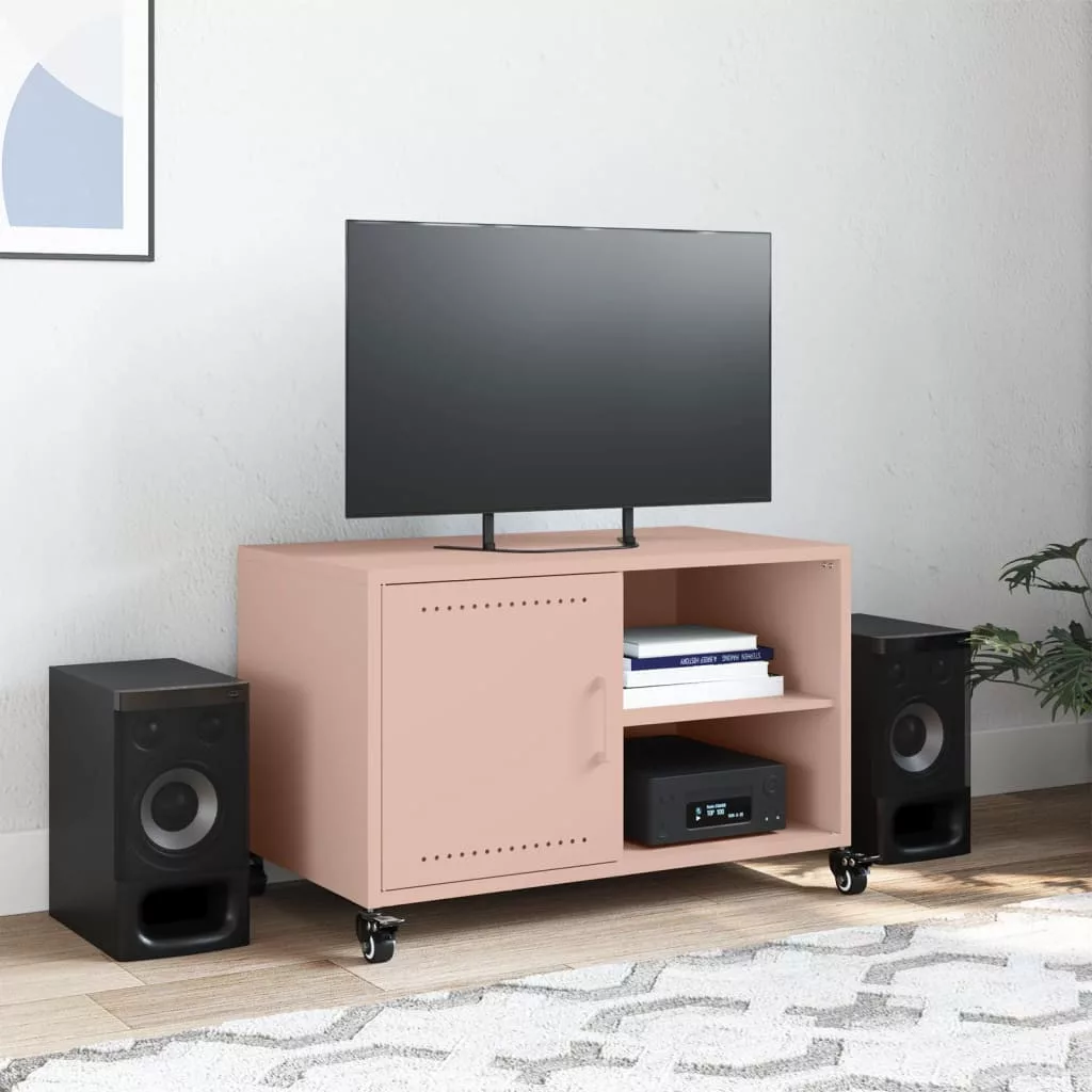 Ez a TV-szekrény egyszerű és praktikus, így tökéletesen illeszkedik a nappaliba.