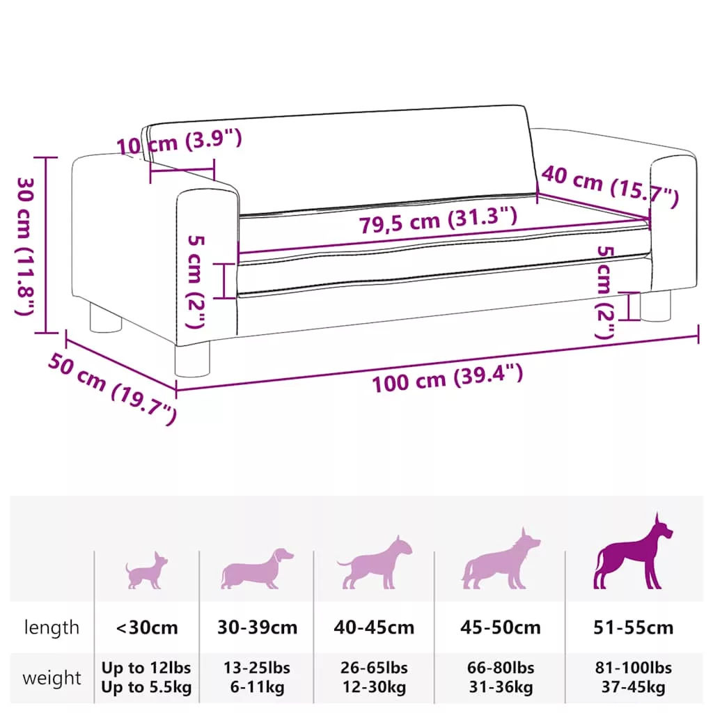 - Kutyaágy mérete: 100 x 50 x 30 cm (Szé x Mé x Ma)