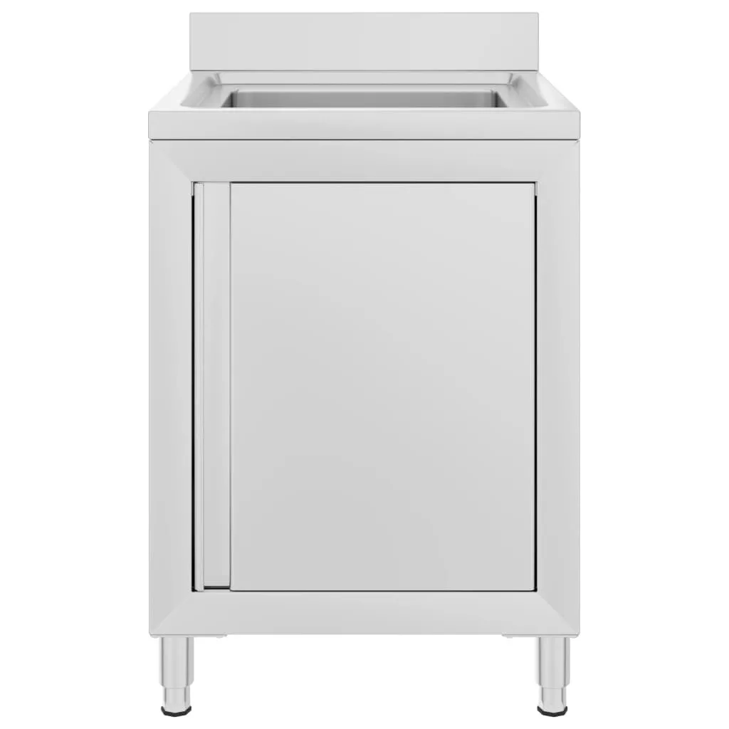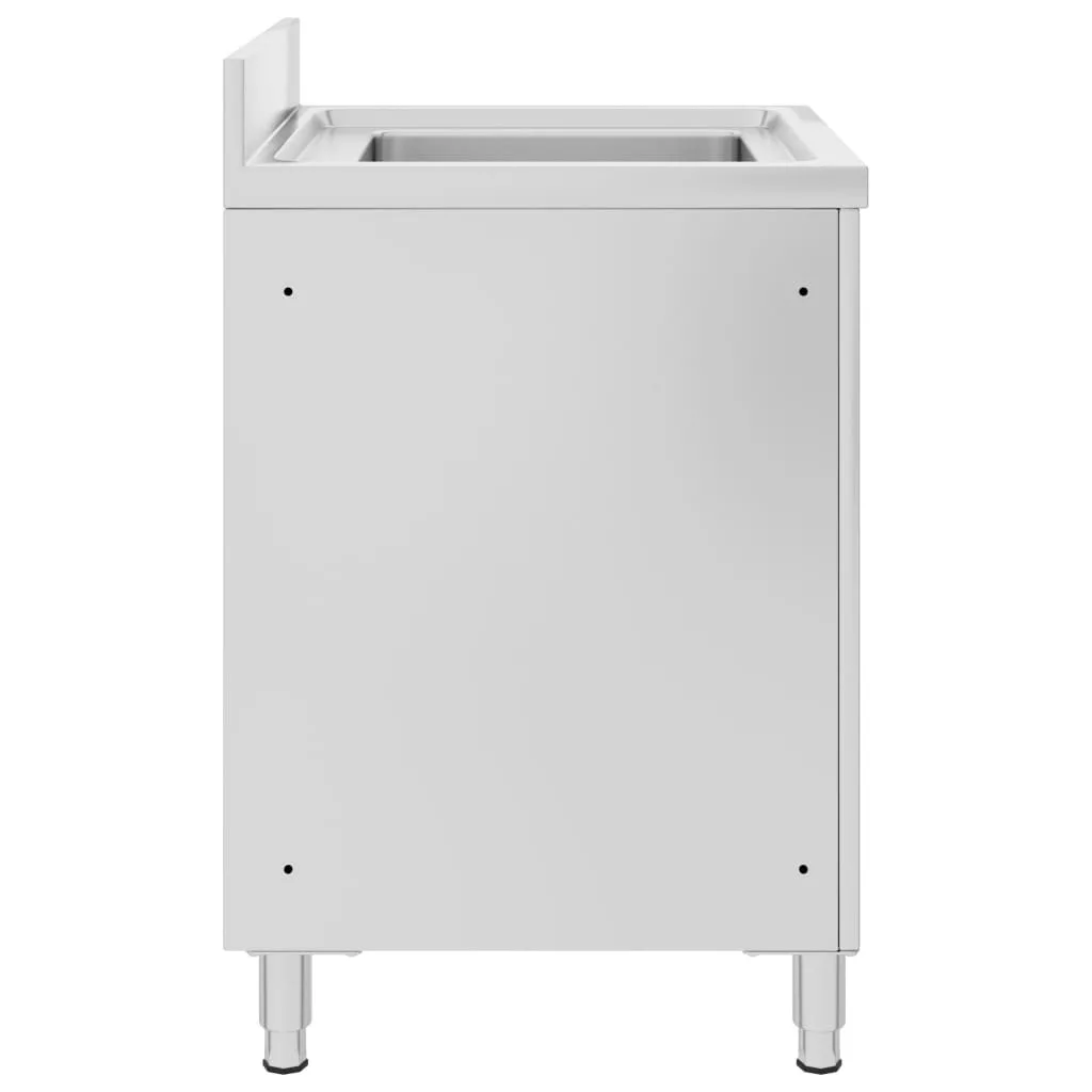 A minőségi rozsdamentes acélból készült szekrény robusztus, korróziógátló és könnyen tisztítható. Az alsó szekrény bőséges helyet biztosít a tisztítóeszközök és kiegészítők tárolására. Az állítható lábak vízszintben tartják a szekrényt egyenetlen padlón. A szekrény egy 10 cm-es vízzáró szegélyt és vízcsőfuratot is tartalmaz.