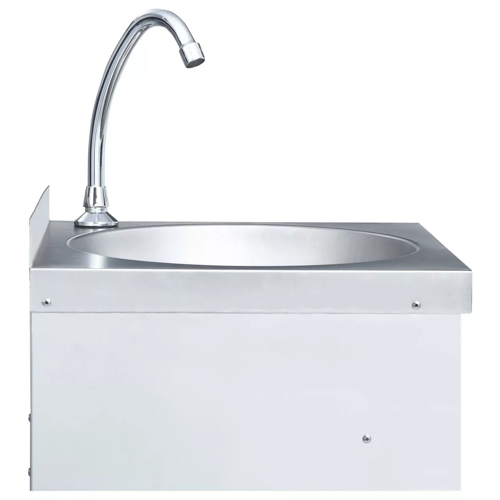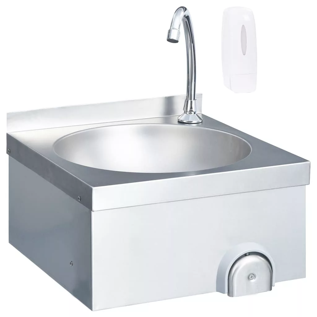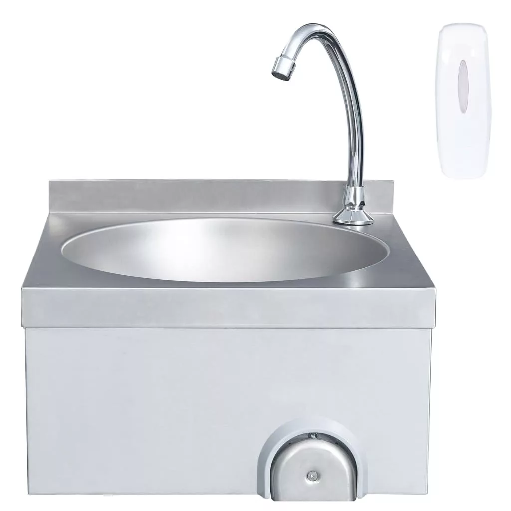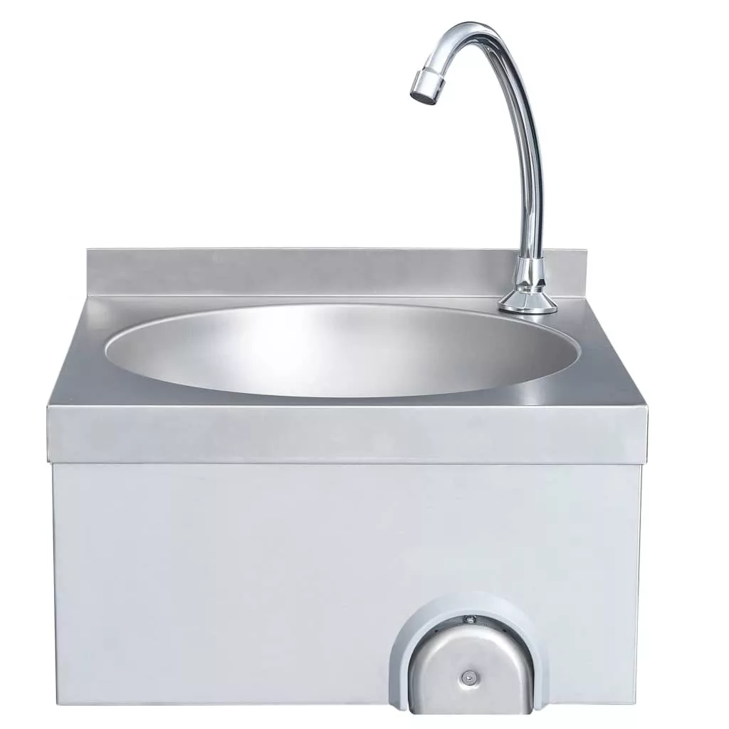 A mosdó tartós rozsdamentes acélból készült, és gyorsan, egyszerűen tisztítható. Csak nyomja meg a vízsugárgombot térdével, ami különösen higiénikus működtetés. A kézmosó ideális vendéglátásban, étkezdék konyhájában, műhelyekben, kerti fészerekben, és kültéri mosdóként is használható.
