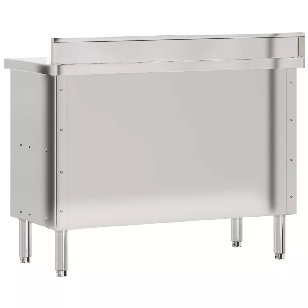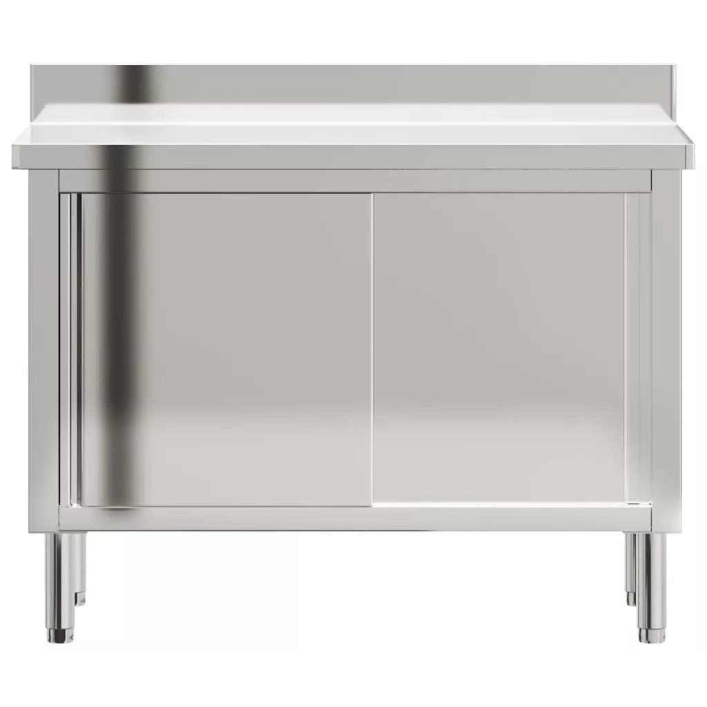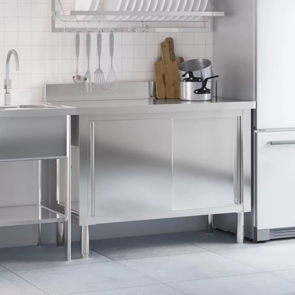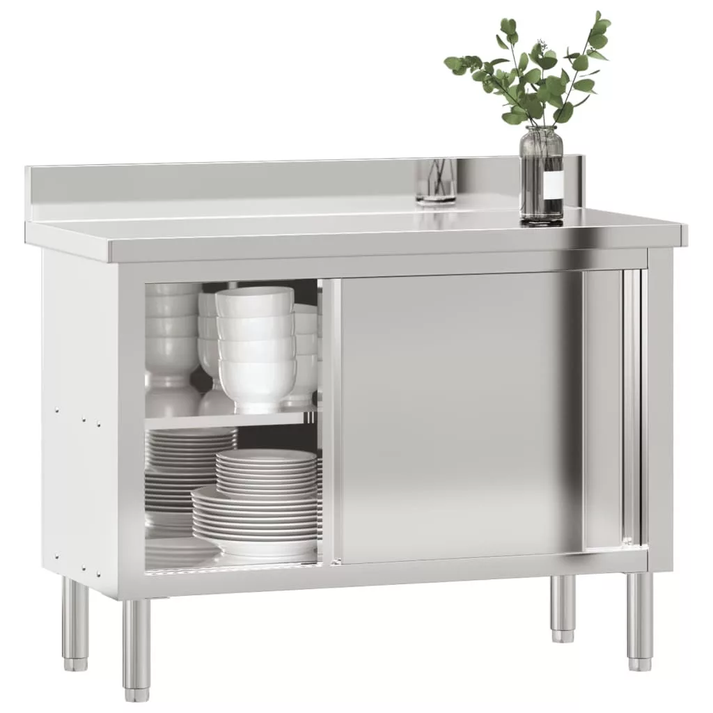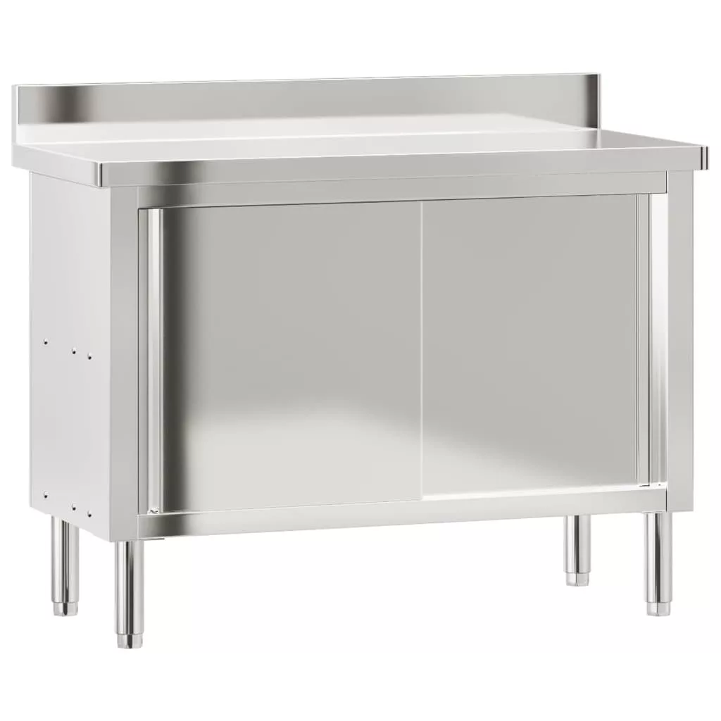 - Tartós és stabil konstrukció: A munkaasztal rozsdamentes acélból készült, amely ellenáll a korróziónak és a rozsdának a több éven át tartó megbízható használatához. A sima felület könnyen tisztítható és karbantartható, így higiénikus ételkészítési területet biztosít.