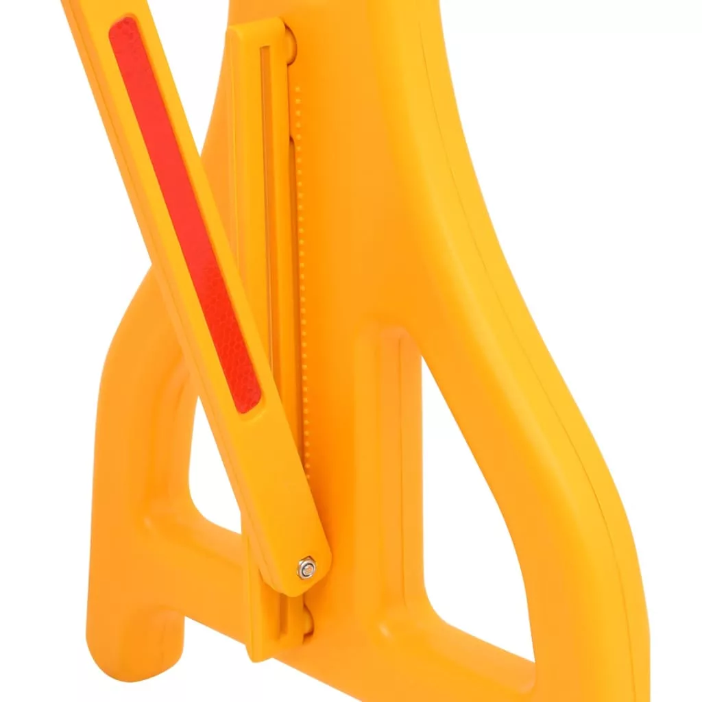 Az akadály szilárd anyagból készült, így masszív, tartós és hosszú távú kültéri használatra alkalmas. Az összecsukható kialakításnak köszönhetően könnyedén szállítható és tárolható. Emellett az akadály hosszúsága is igényeinek megfelelően állítható, a fényvisszaverő csíkok pedig maximális láthatóságot biztosítanak.