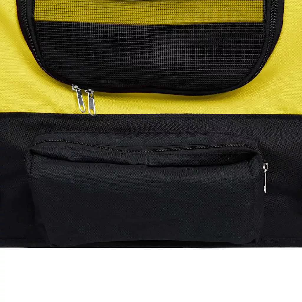 A kisállatszállító kerékpár-utánfutó erős acél vázzal rendelkezik és oxford szövetből készült, így vízálló, időtálló és könnyen karbantartható. A mindkét oldalon található, hálós kialakítású ablakok lehetővé teszik a megfelelő szellőzést, miközben az elülső és hátsó nyílások a könnyű bejutást segítik. A kutyaszállító kerékpár-utánfutó felfüggesztése biztosítja a zökkenőmentes utazást, és 360 fokban elforgatható. Biztonsági forgócsuklója biztosítja, hogy az utánfutó függőlegesen maradjon, ha a kerékpár felborul. A kisállat kerékpár-utánfutó gyorskioldó csatlakozóval rendelkezik a kerékpárhoz való egyszerű rögzítéshez. Emellett a vonóhorog a helytakarékosság érdekében összecsukható.