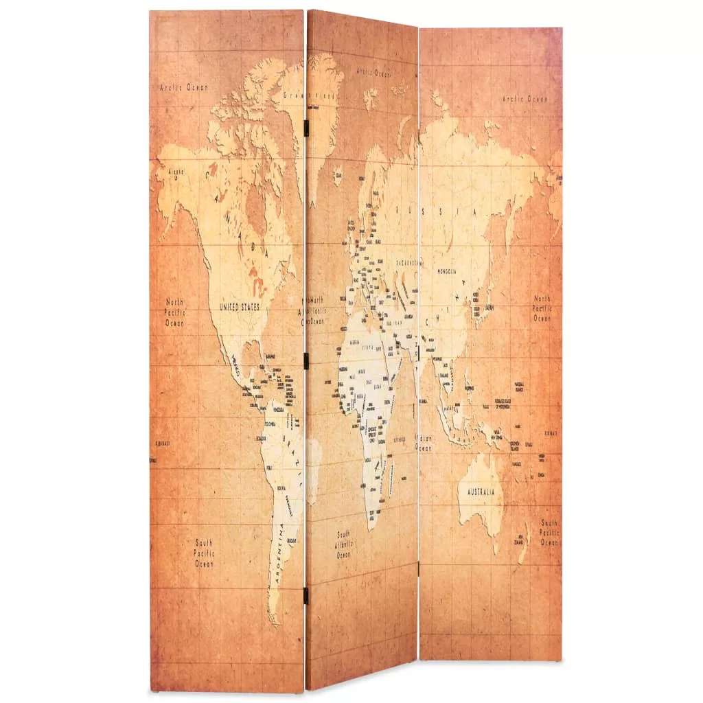A paraván tömör favázzal rendelkezik, melyet mindkét oldalán világtérképpel díszített vászon fed, így az modern bájjal ruházza fel otthonát. A paraván könnyen összecsukható, tehát rendkívül helytakarékos, ha épp nem használja.