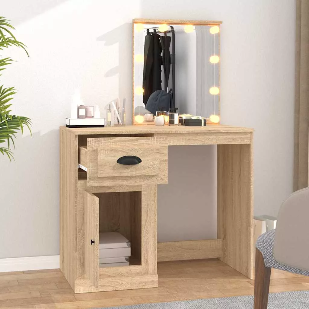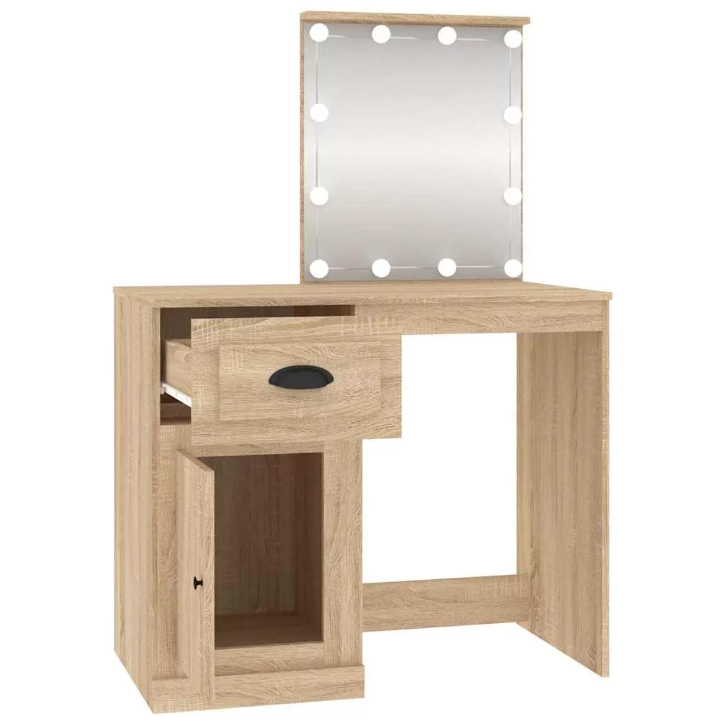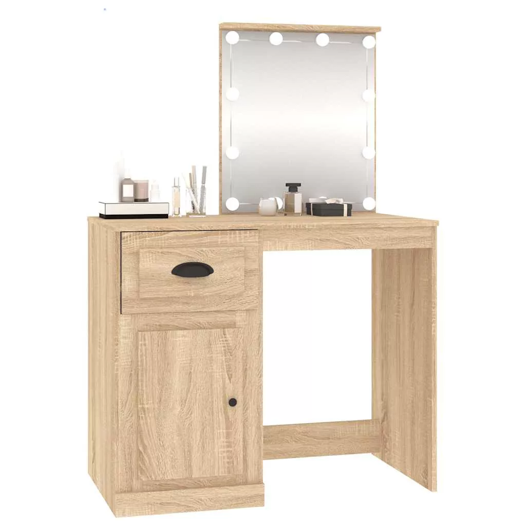 vidaXL sonoma tölgy színű LED-es fésülködőasztal 90x50x132,5 cm