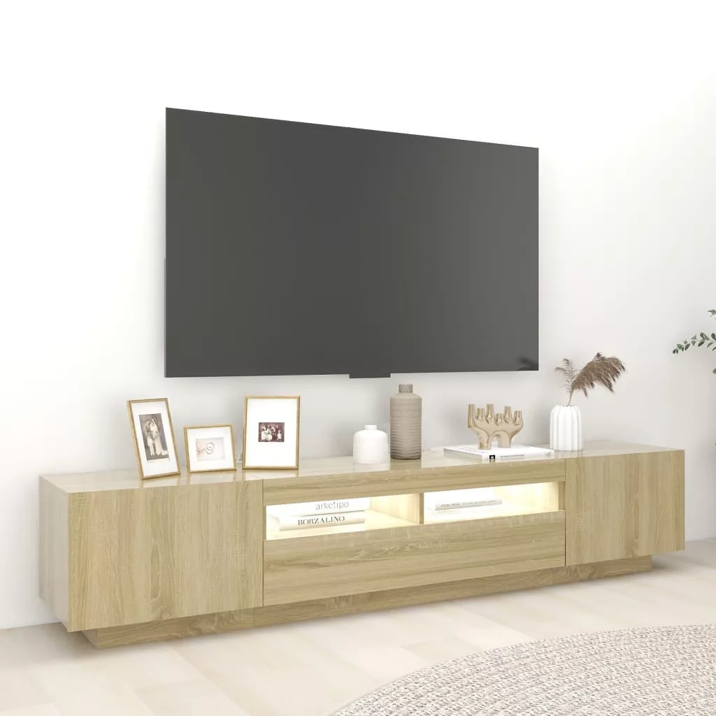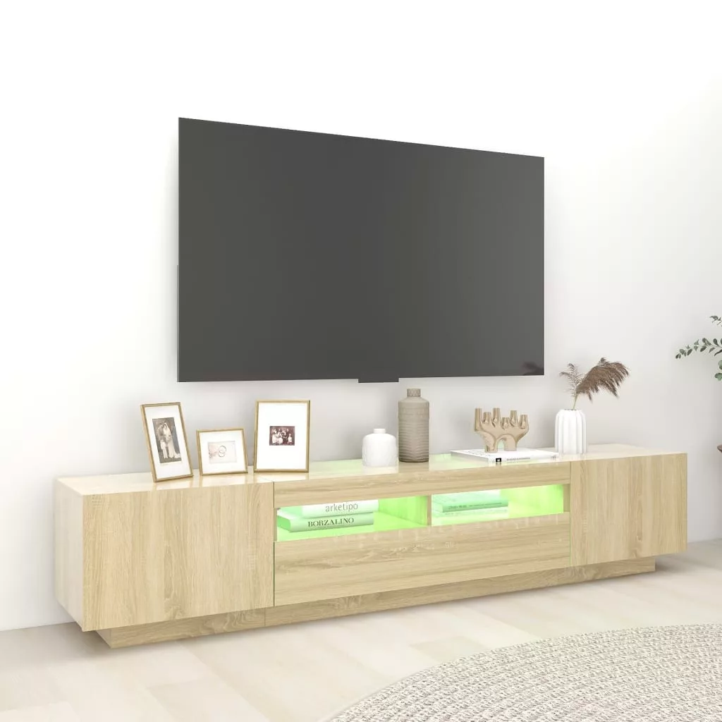 Ez a stílusos, mégis praktikus kialakítású LED-lámpákkal ellátott TV-szekrény minden bizonnyal szobája középpontjává fog válni.