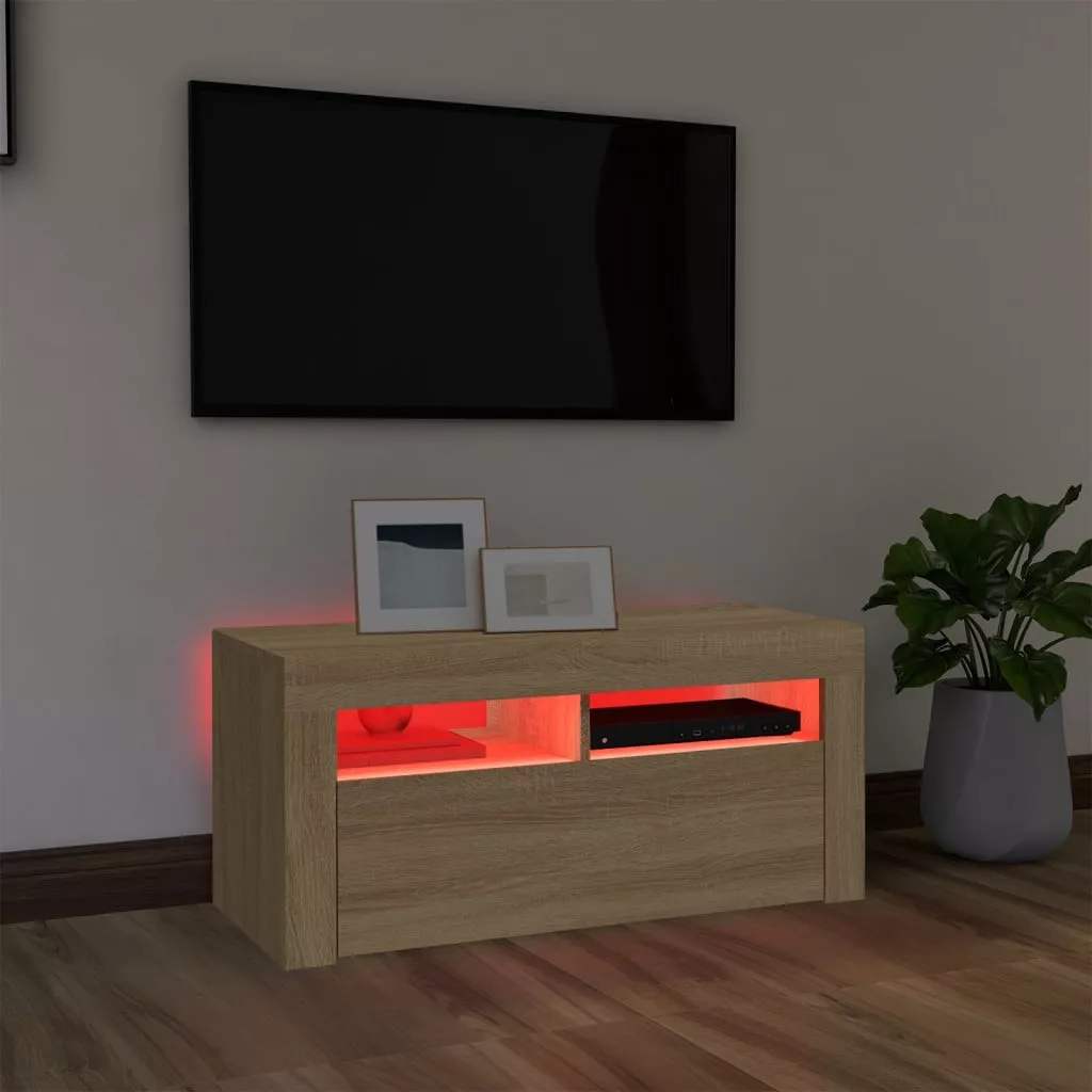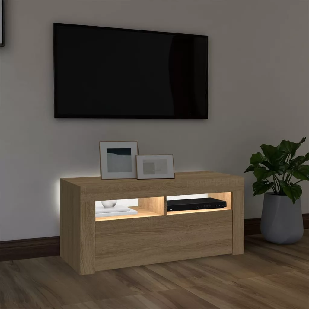Ez a stílusos, mégis praktikus kialakítású LED lámpákkal ellátott TV-szekrény minden bizonnyal szobája középpontjává fog válni.