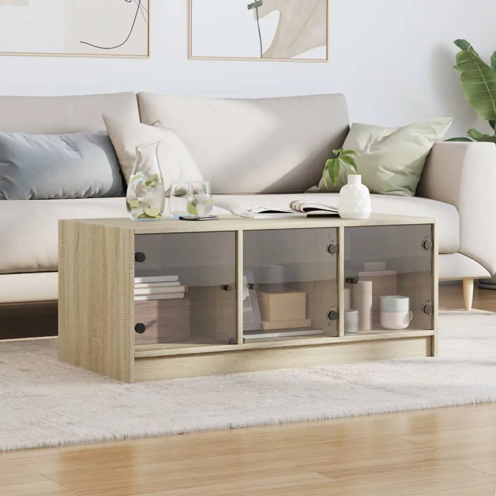 - Praktikus üvegajtók: Tartsa rendben környezetét azzal, hogy a kisebb tárgyakat a teázóasztal ajtajai mögé rejti. Ezenkívül az üvegajtók lehetővé teszik, hogy belásson a nappaliasztal belsejébe, és gyönyörűen rendezze el odabent a tárgyakat.