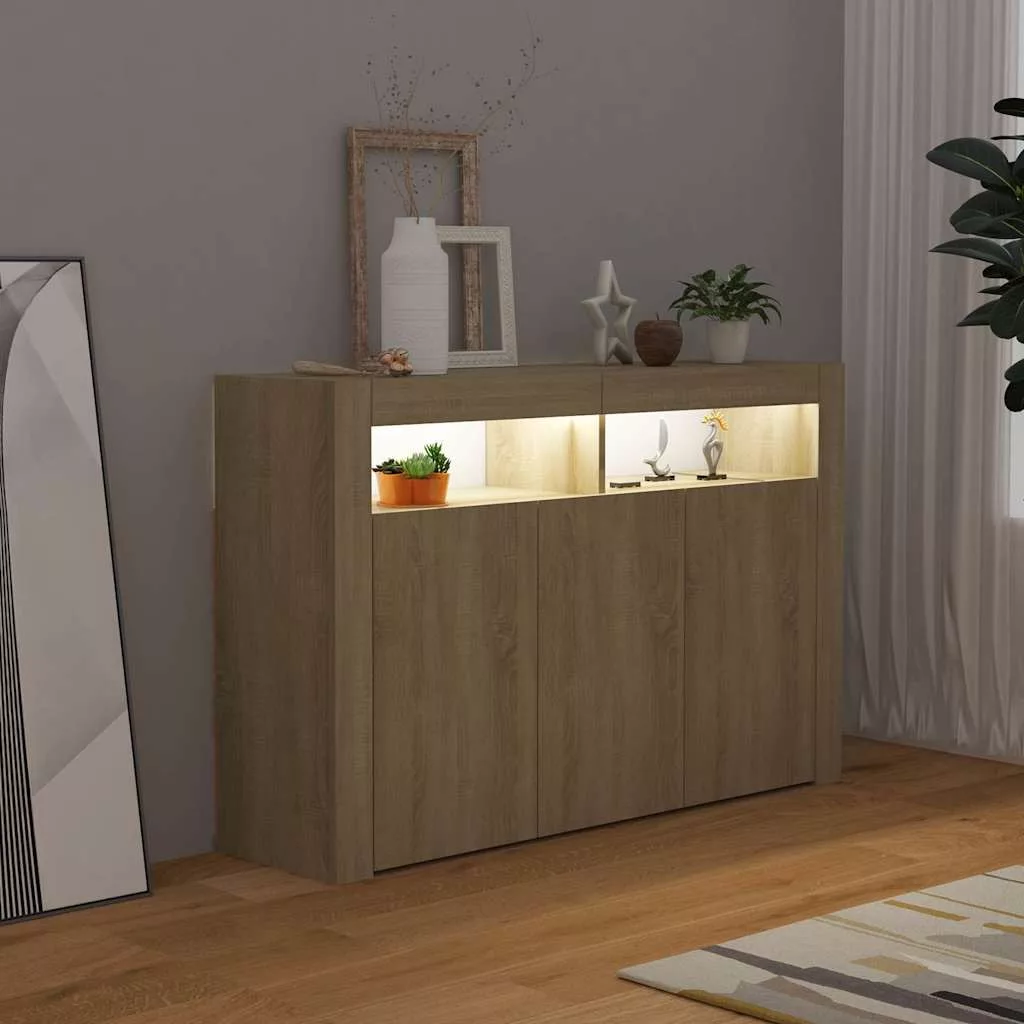 Ez a LED-világítással ellátott tálalószekrény otthona praktikus és igen dekoratív kiegészítője lesz.