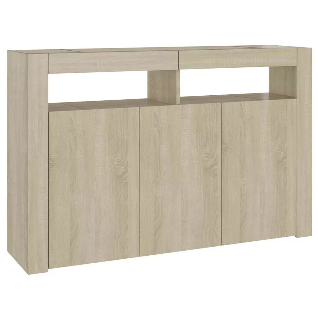 - RGB LED-világítás: A tálalószekrény élénk RGB LED-világítással lett felszerelve. A sokféle testre szabható menü segítségével egyszerűen megváltoztathatja a világítás színét, sőt, automatikus váltakozást is beállíthat. Ezek a LED-lámpák nemcsak a tálalószekrény modern megjelenését, de divatosságát is növelik.