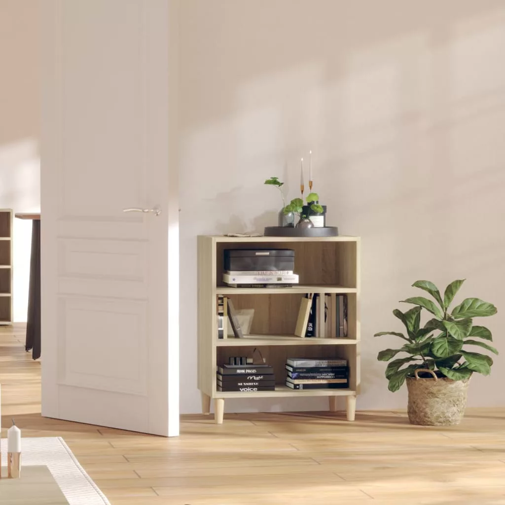 A könyvszekrény forgácslapból készült, így masszív, tartós és hosszú élettartamú. A falábak tovább növelik stabilitását. A kisszekrény 3 polccal rendelkezik, amelyek bőséges tárolóhelyet biztosítanak. A masszív asztallapra dísztárgyakat, képkereteket vagy cserepes növényeket helyezhet. A tárolószekrény nedves ruhával könnyen tisztítható.