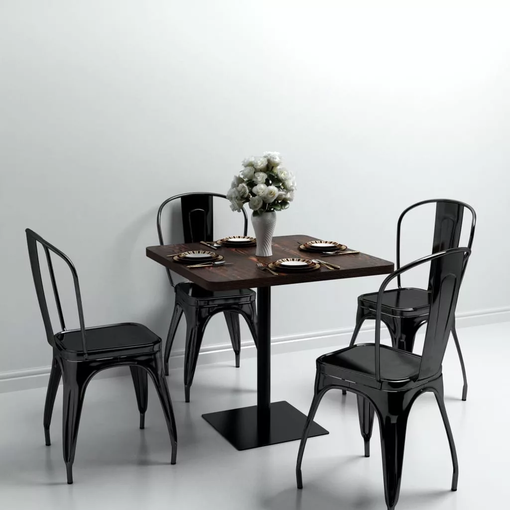 Az asztallap MDF-ből készült, majd szemcsés felületet kapott, a lábak és a talp pedig acélból készült. Egy nedves ronggyal könnyedén tisztítható. Használhatja otthonában, de akár éttermekben, kávézókban és bárokban is.