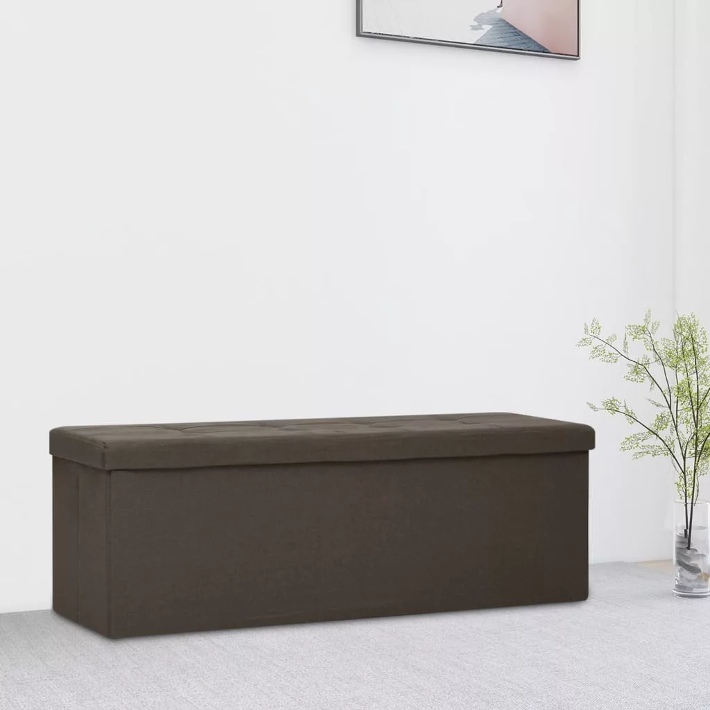 Ez az előszobai pad MDF-ből készült és művászon kárpitozást kapott, így igazán tartós és stabil. A habszivaccsal töltött tárolódoboz kényelmes ülőhelyet biztosít. A pad bőséges helyet kínál különféle kellékek kézközelben való tárolására. Ráadásul a doboz a helytakarékosság érdekében összecsukható, ha éppen nincs használatban.