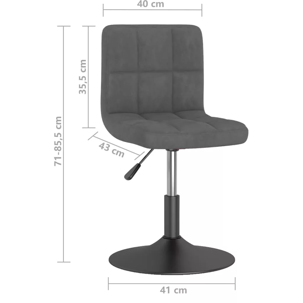 Ez az étkezőszék az optimális kényelem érdekében puha tapintású bársonykárpitozást kapott. A fekete porszórt acélváz nagy szilárdságot és stabilitást biztosít. Emellett a gázemelő mechanizmusnak köszönhetően a forgószék magassága állítható. A nagy rugalmasság érdekében 360 fokban el is forgatható.