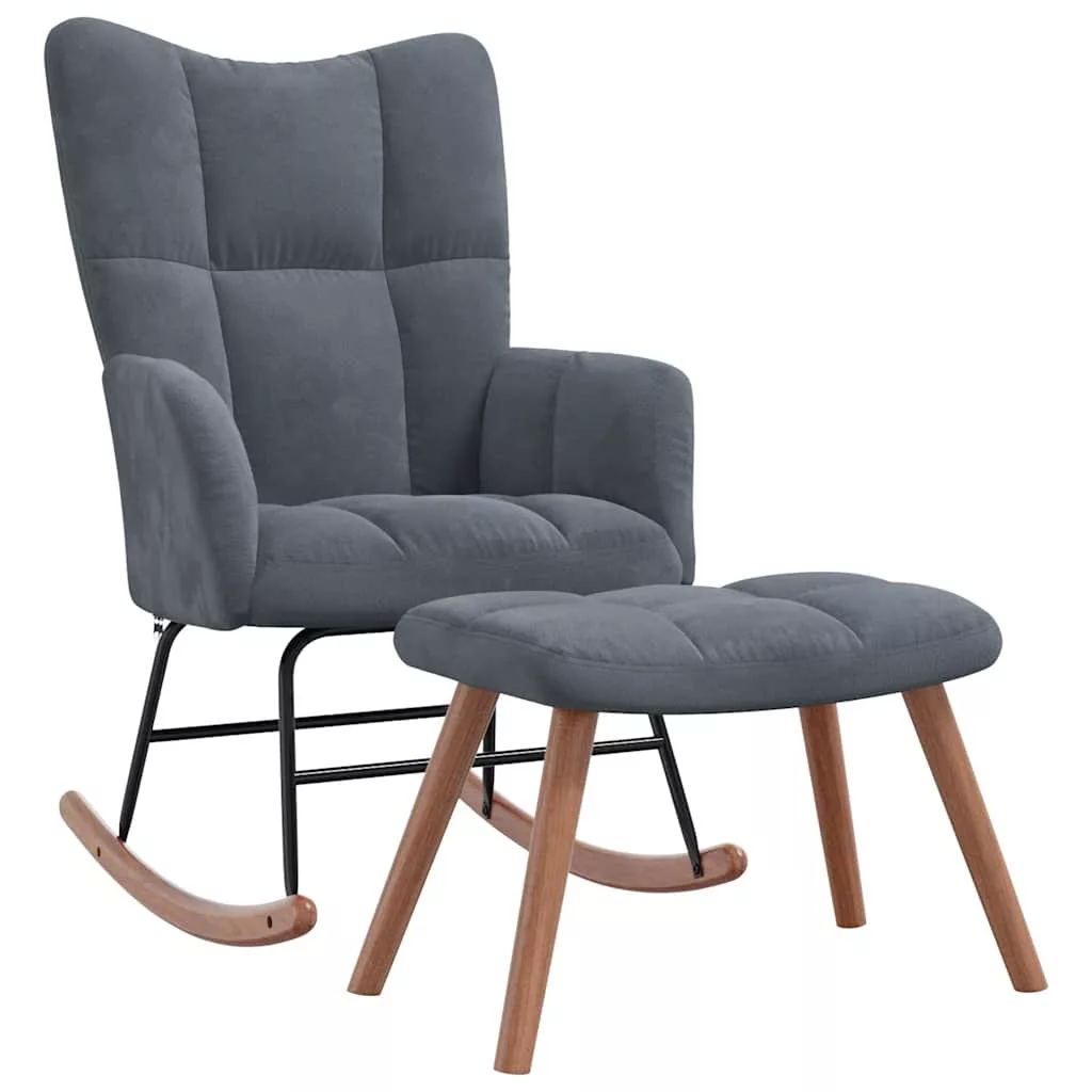 A négyzetes varrásoknak köszönhetően a pihenőszék gyönyörű megjelenésű. A vastag habszivacsos párnázás és a puha tapintású bársonykárpit optimális kényelmet nyújt. A hosszú talpak miatt a fotel nehezen fog felborulni. Emellett az acélváznak és a lábaknak, valamint a fa hintatalpaknak köszönhetően a nappaliszék és a lábtartó stabil és tartós.