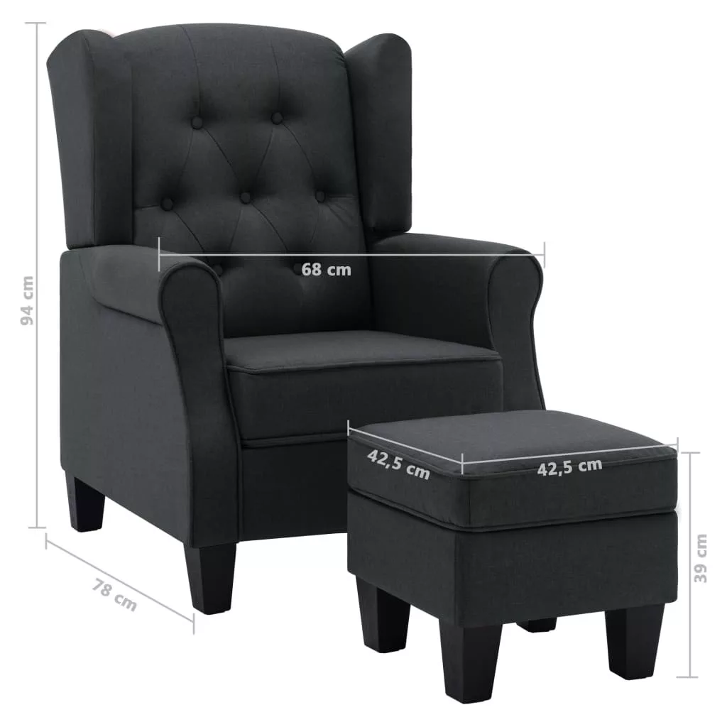 A kanapészék szövetből készült és habbal van töltve, így erős és puha. A faváz extra stabilitást biztosít a széknek. A pihenőszék magas szárnyas háttámlával és mély párnázással rendelkezik, így nagyon kényelmes.