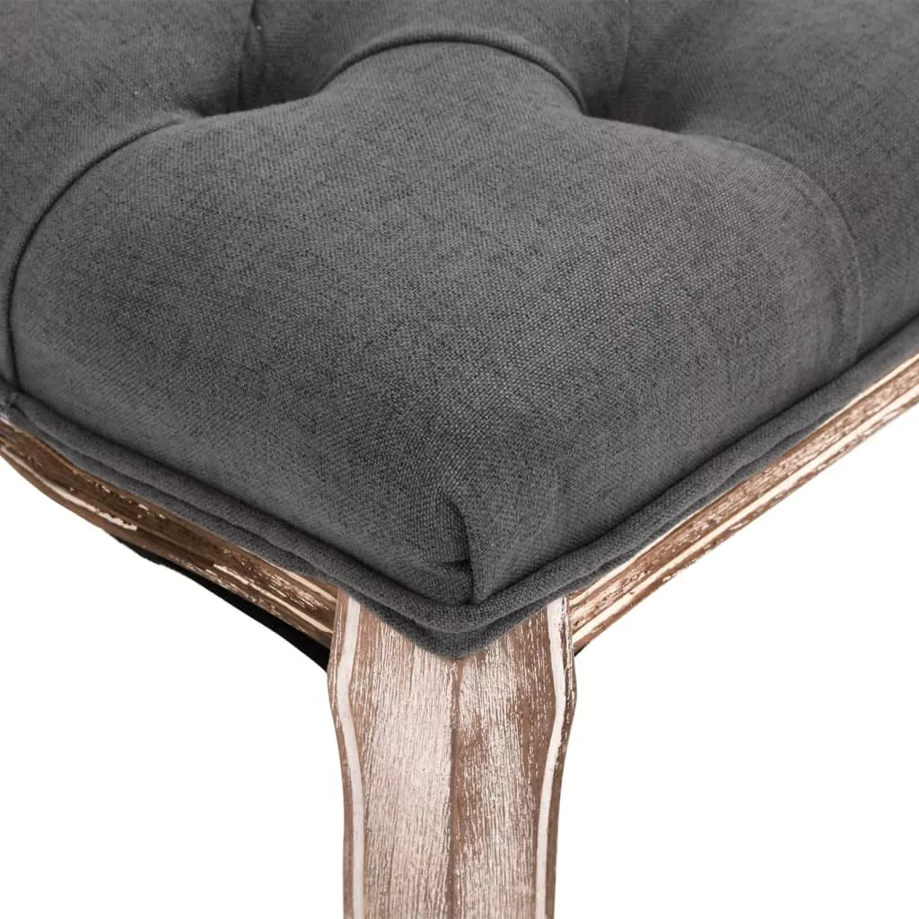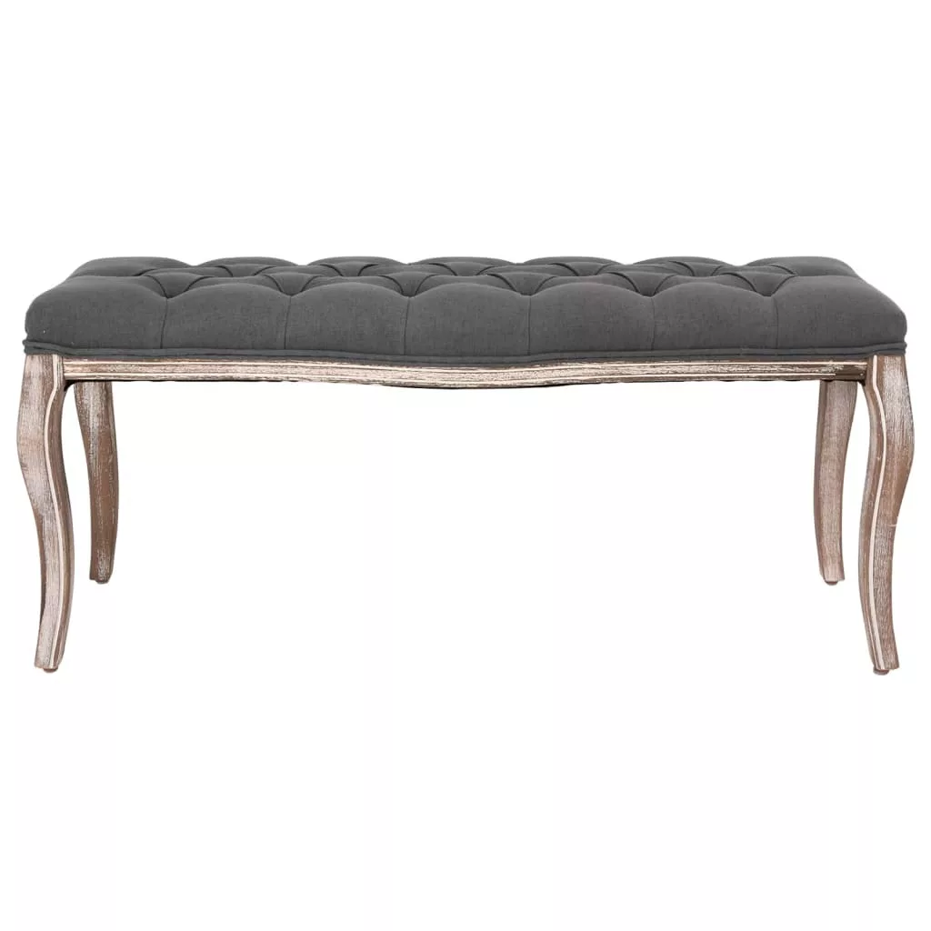 A klasszikus kialakítású pad kifinomult varázsa az elegáns, hajlított lábakkal ellátott tömör faváznak köszönhető. A kiváló minőségű és nagyvonalúan párnázott vászonkárpitozás kényelmessé és stílusossá teszi a padot.