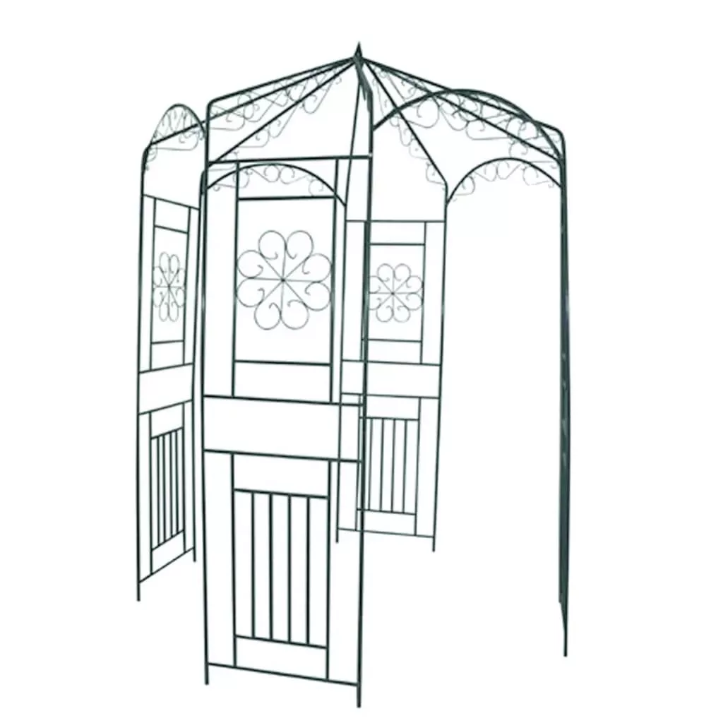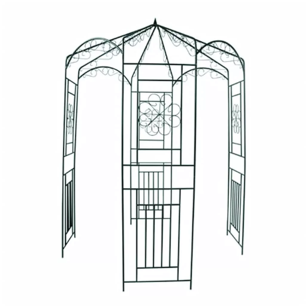 Ez a nagyszerű kerti boltív időjárásálló kovácsolt vasból készült, és stabil alapot kínál rózsák és más kúszónövények számára. A gyönyörű dísztárgyak romantikus hangulatot kölcsönöznek a boltívnek, valamint a pavilon formájú kialakításnak köszönhetően, tökéletesen alkalmas arra, hogy nyáron árnyékot teremtsen.