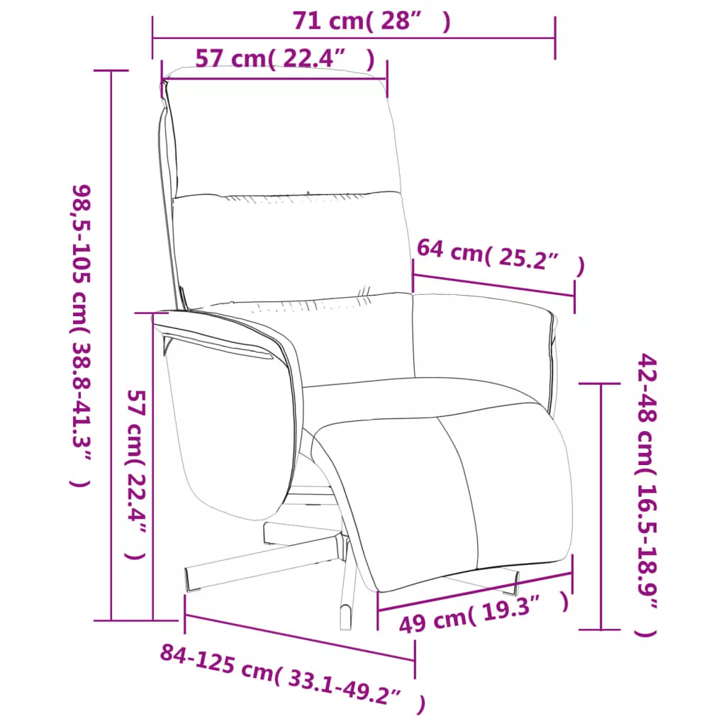 - Kézzel dönthető: Ezt a fotel dönthető, így a háttámlát és a lábtámlát saját kényelme szerint állíthatja be. A háttámla 105 és 125 fok között dönthető.
