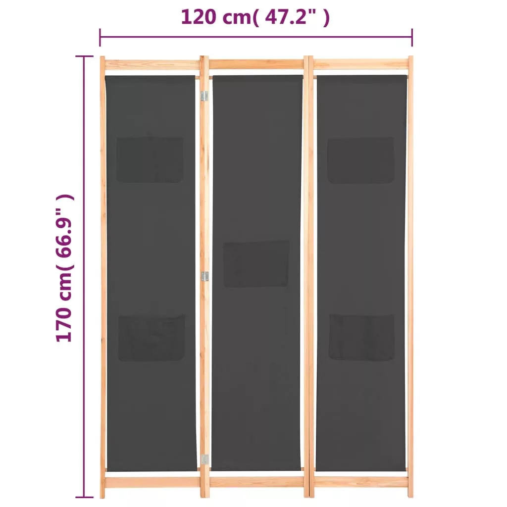 A paraván váza fából készült, a takarópanelek pedig szövetből. Használaton kívül egyszerűen összecsukható.