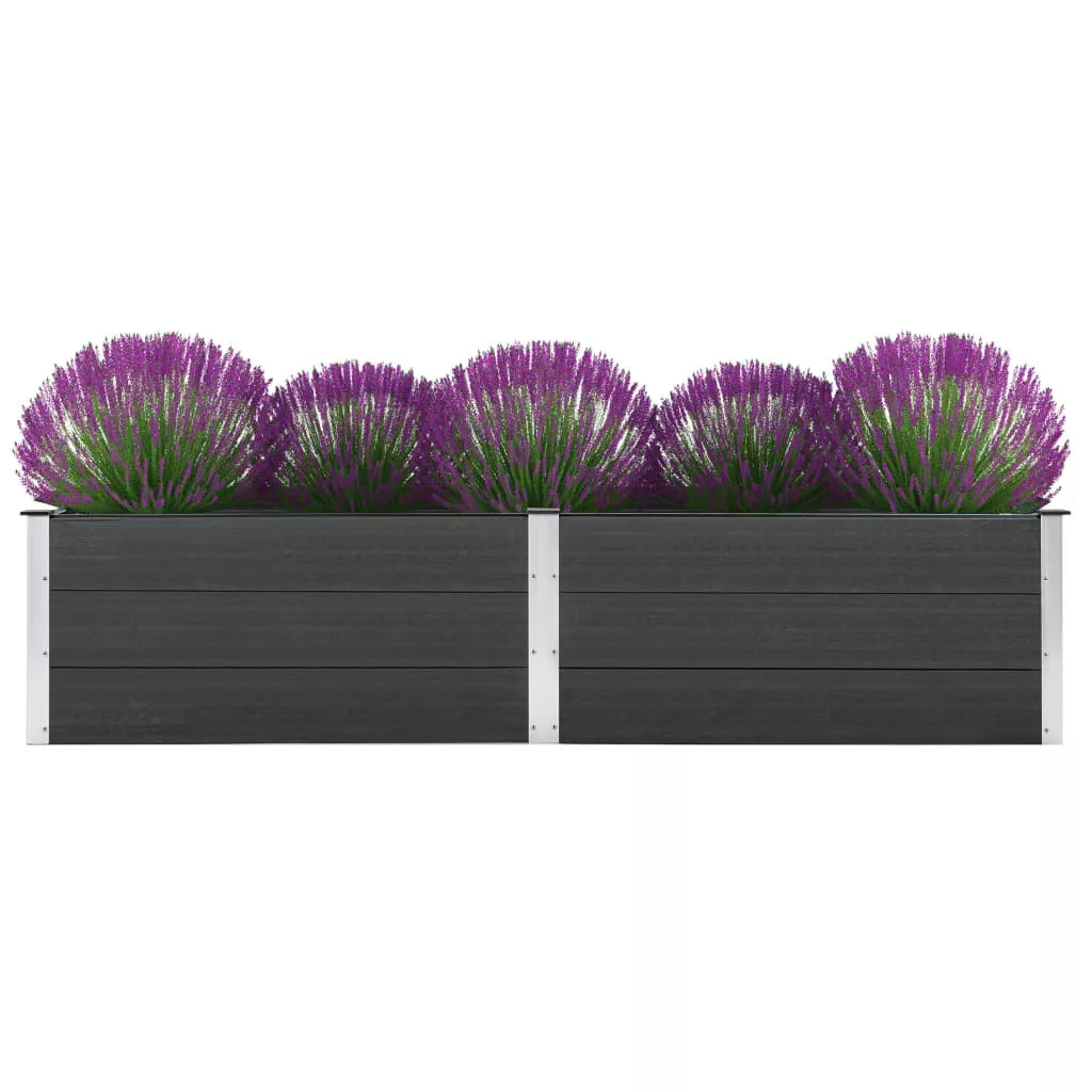 A virágtartó fa-műanyag kompozitból készült, aminek köszönhetően tartós, időjárásálló, valamint tökéletes kültéri használatra. Nagy mennyiségű növény és virág fér el benne.
