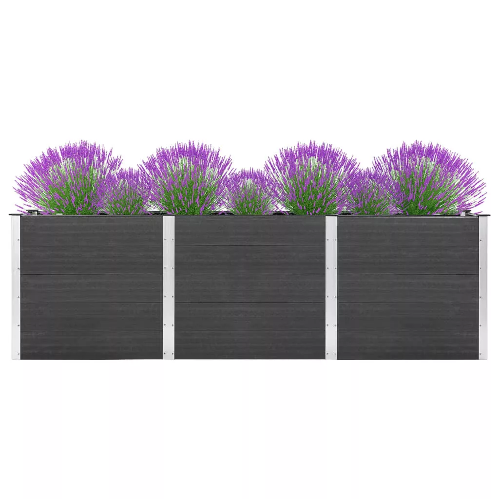 A virágtartó fa-műanyag kompozitból (WPC) készült, aminek köszönhetően tartós, időjárásálló, valamint tökéletes kültéri használatra. Nagy mennyiségű növény és virág fér el benne.