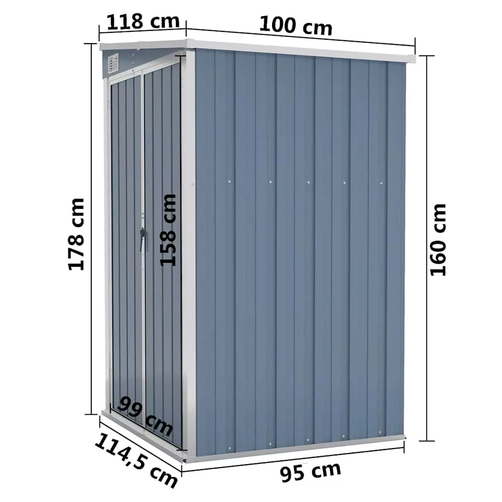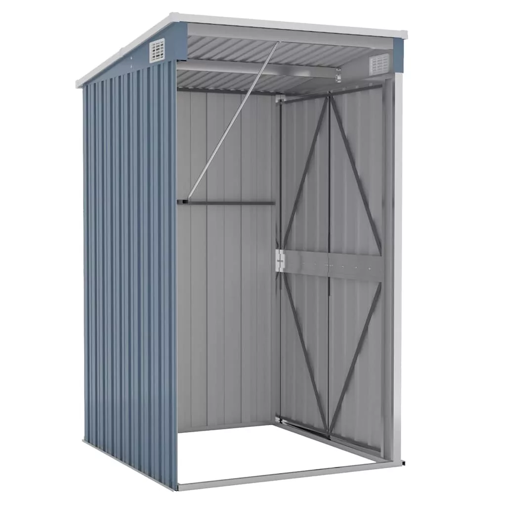 Mivel horganyzott acélból és fémből készült, a tároló minimális karbantartást igényel és nagyon tartós. Az elülső dupla nyíló ajtók könnyű be- és kijutást tesznek lehetővé. A zárható műanyag fogantyú biztosítja a tárgy biztonságát. Ezenkívül az esővíz automatikusan elfolyik a tetőről a lejtős kialakításnak köszönhetően.