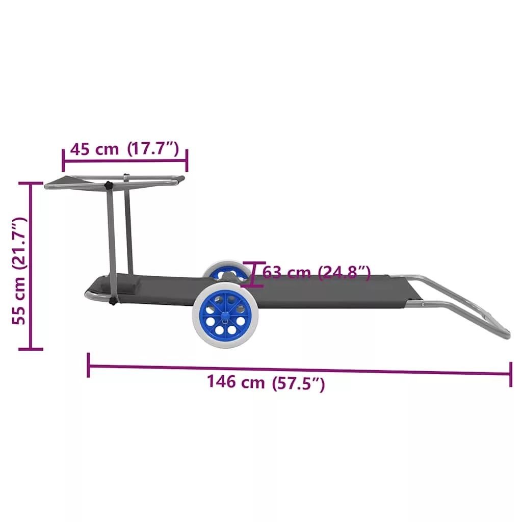 Ez a kiváló minőségű napozóágy állítható tetővel lett felszerelve, így élvezheti a napozást anélkül, hogy aggódnia kellene a fény miatt. A váz masszív, porszórt acélból, az ülés és a háttámla pedig strapabíró poliészter anyagból készült. A háttámla állítható, így kényelmesen feküdhet, amilyen pozícióban csak szeretne. Puha fejtámla tartozik hozzá a nagyobb kényelem érdekében.
