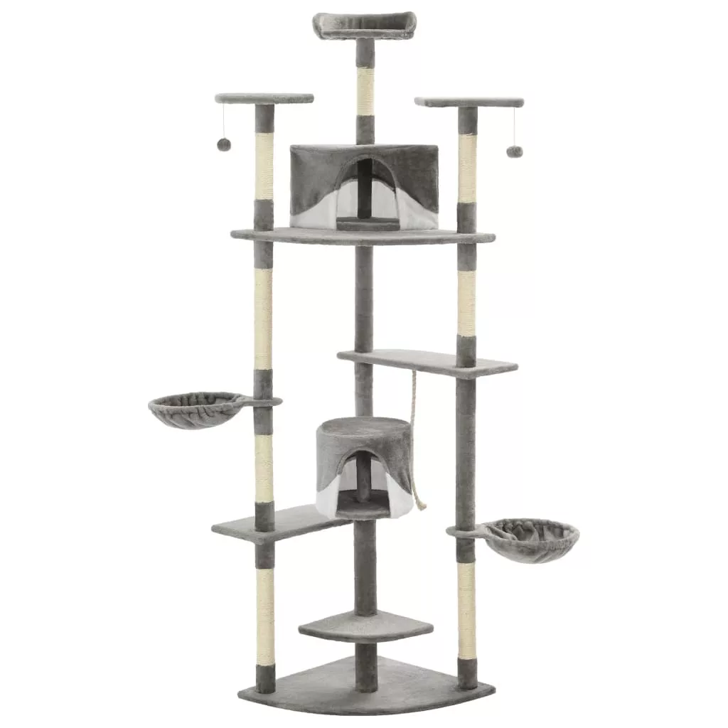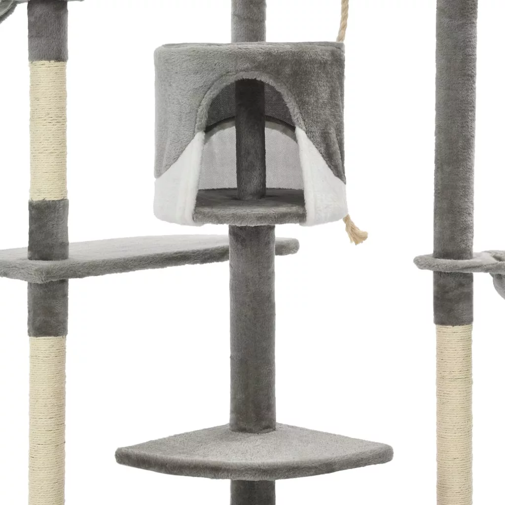 Macska barátai fenhetik a karmukat a szizál kötéllel körbetekert kaparófákon, melyeken kis kedvencei egészséges módon kiélhetik kaparóösztönüket. Élvezni fogják, ahogy kergethetik egymást, miközben fel-le ugrálnak ezen a mókás játszóközponton. A macskabútor tetején lógó játékok találhatóak, melyek lekötik a kíváncsi macskákat. Ha már kijátszották magukat, kis barátai imádni fogják, ahogy elheveredhetnek a felső pihenőkön, ahonnan még jobb kilátás vár rájuk. A komfortos házikókban akár el is bújhatnak, hogy szundítsanak egyet, vagy kiereszthetik a gőzt a kényelmes kosarakban.