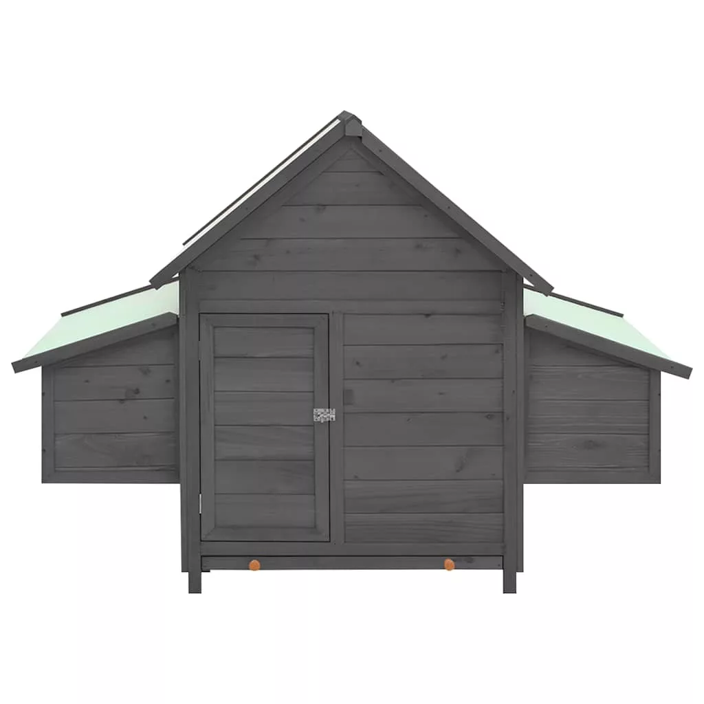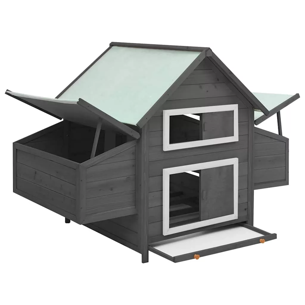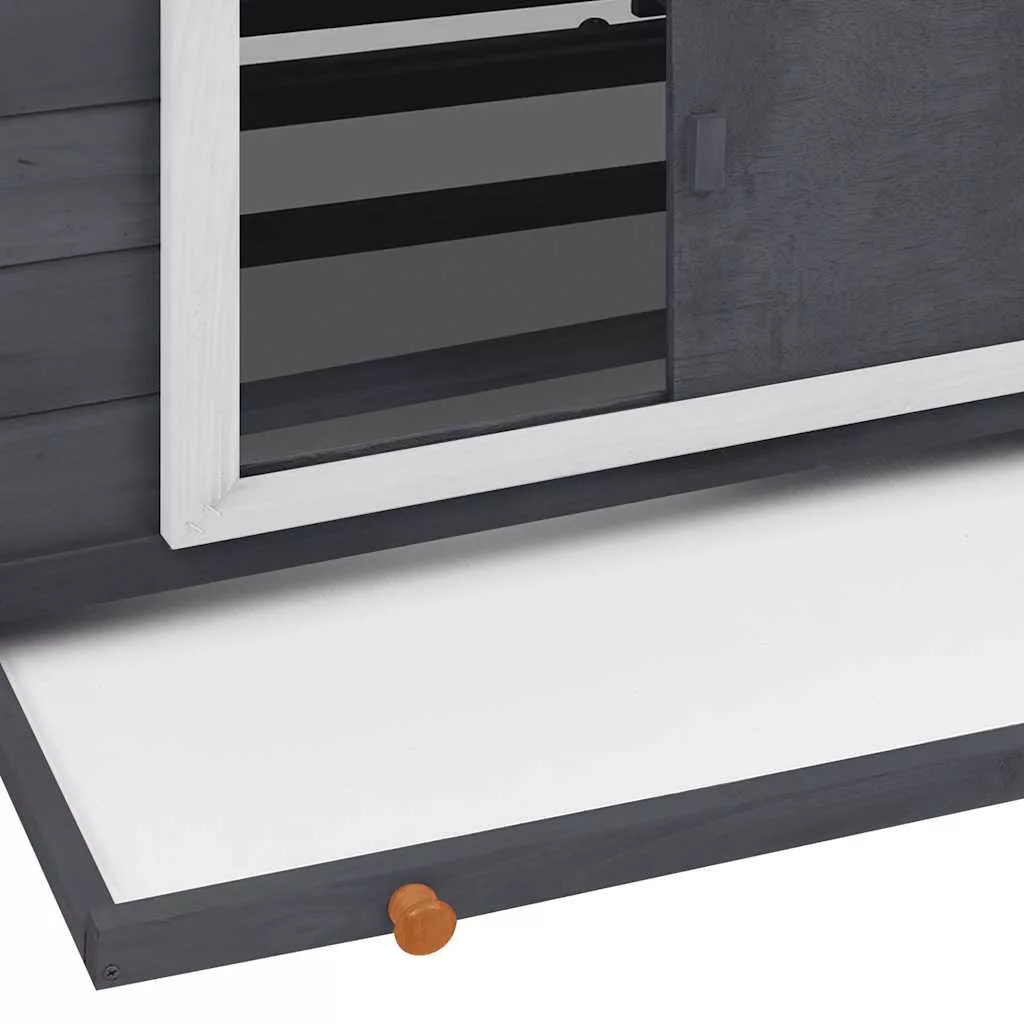 A tyúkól eleje egy ablakkal lett felszerelve, hogy a friss levegő szabadon áramolhasson be. Két fészek található benne, mindkettő nyitható tetővel a tojások összegyűjtéséhez. Az alsó tálca kihúzható a könnyű tisztítás érdekében. Az ajtó kívülről retesszel zárható.