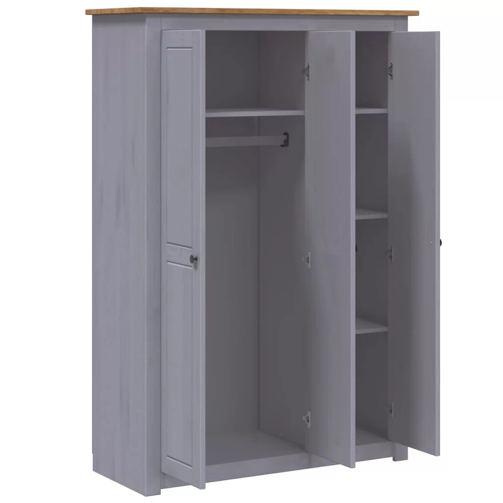 A szekrény 4 rögzített polccal rendelkezik, melyeken cipők, pulóverek, farmerek, kalapok, kézitáskák tárolhatók rendezetten. A méretes tárolórekesz akasztórúddal lett ellátva, melyre felakaszthatja kabátjait, ruháit stb. A ruhásszekrény tömör fenyőből készült, így strapabíró, és hosszan tartó használatot tesz lehetővé.