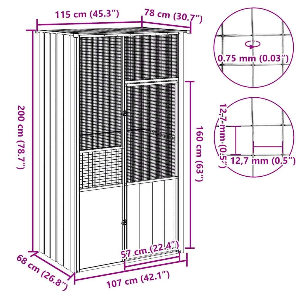 - Masszív váz: A masszív horganyzott acél szerkezetnek köszönhetően ez a madárház tartós és hosszú élettartamú.