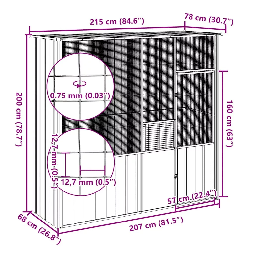 - Masszív váz: A masszív horganyzott acél szerkezetnek köszönhetően ez a madárház tartós és hosszú élettartamú.