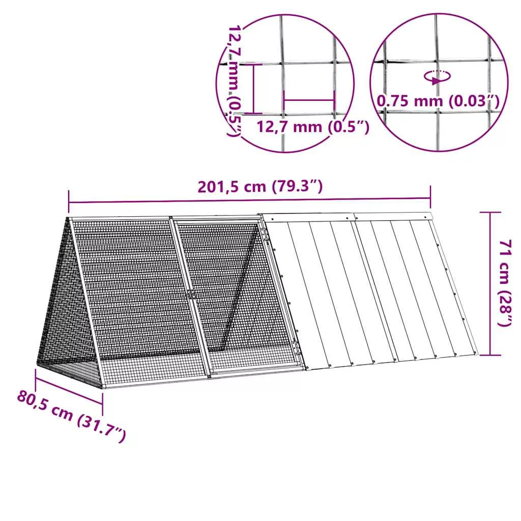 - Stabil felépítés: A masszív, horganyzott acélszerkezetnek köszönhetően ez a nyúlketrec tartós és időtálló.