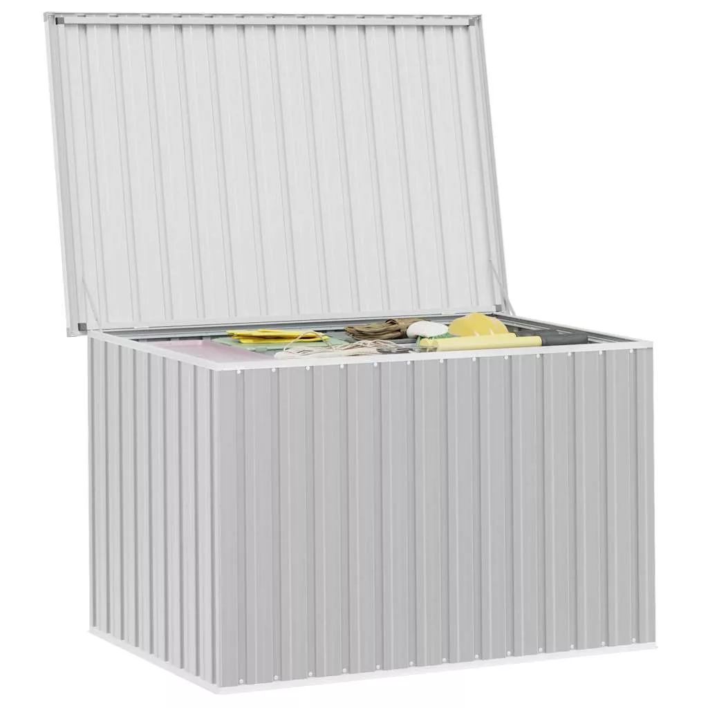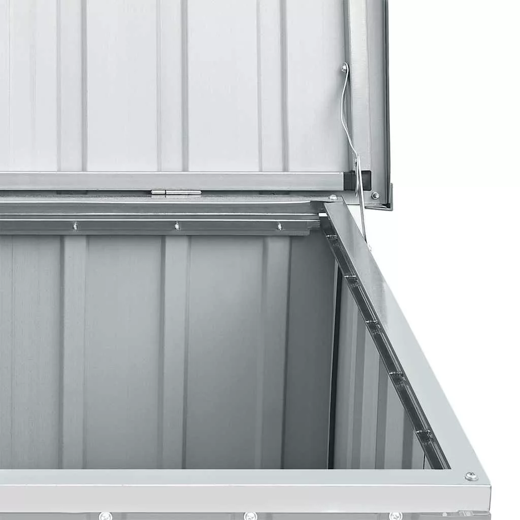 - Masszív és tartós anyag: A tárolóláda masszív horganyzott acélból készült, amely beltéri és kültéri használatra egyaránt alkalmas.