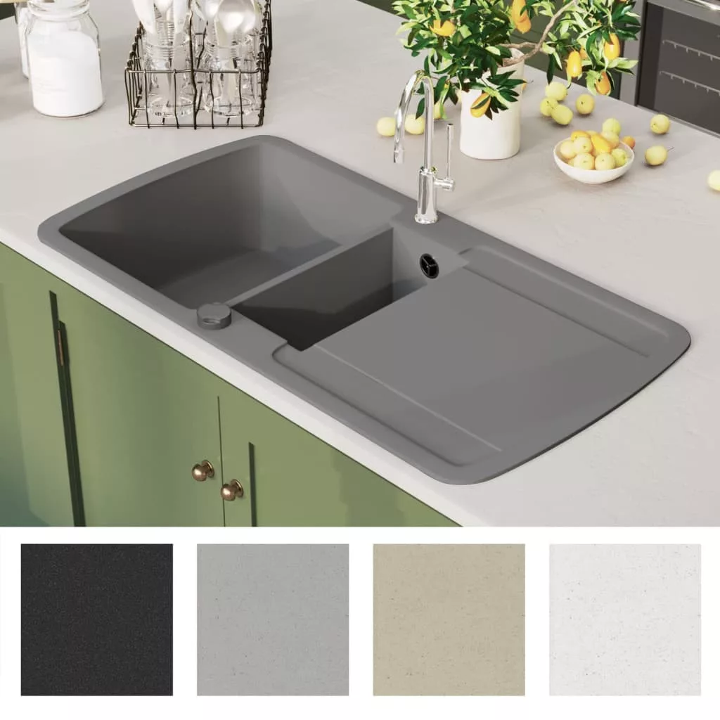 A kiváló minőségű gránitnak köszönhetően a mosogató hőálló, karc- és ütésálló és rendkívül könnyen tisztítható. Teljesen elforgatható, ami azt jelenti, hogy jobb vagy bal oldalra is beépíthető. A szállítás egy szűrőkosarat is tartalmaz, mely felfogja a nagyobb törmelékeket.