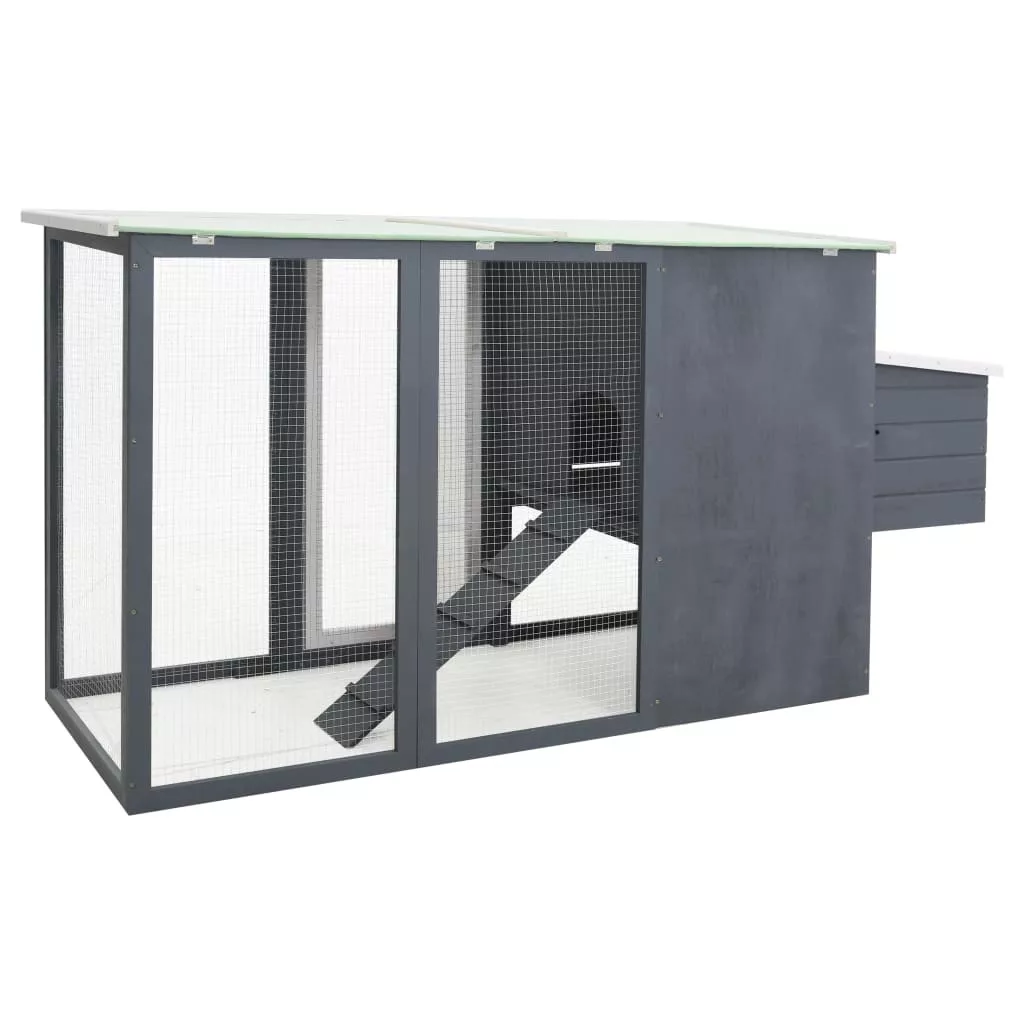 A ketrec kiváló minőségű fenyőből készült, így hosszú éveken át tartó szolgálatot nyújt. A zöld vízlepergető tető védelmet nyújt az esővel szemben, és meleg, kényelmes pihenőhelyet teremt az állatok számára.