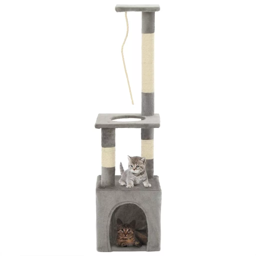 A plüssel kárpitozott kaparófák kényelmes szizálkötéllel vannak körbetekerve, így ideálisak arra, hogy szőrös kis barátja élesítse rajtuk a karmait. Macskái nagyon élvezni fogják, ahogy kergetik egymást, miközben le-fel ugrálnak erre a nagyszerű játszóközpontra. Macskabútorunk egy kényelmes házikóval is rendelkezik, ahol cicája alhat vagy pihenhet egy jót. Mászókötéllel és emelvényekkel van ellátva, hogy kis kedvence mindig jól érezze magát.