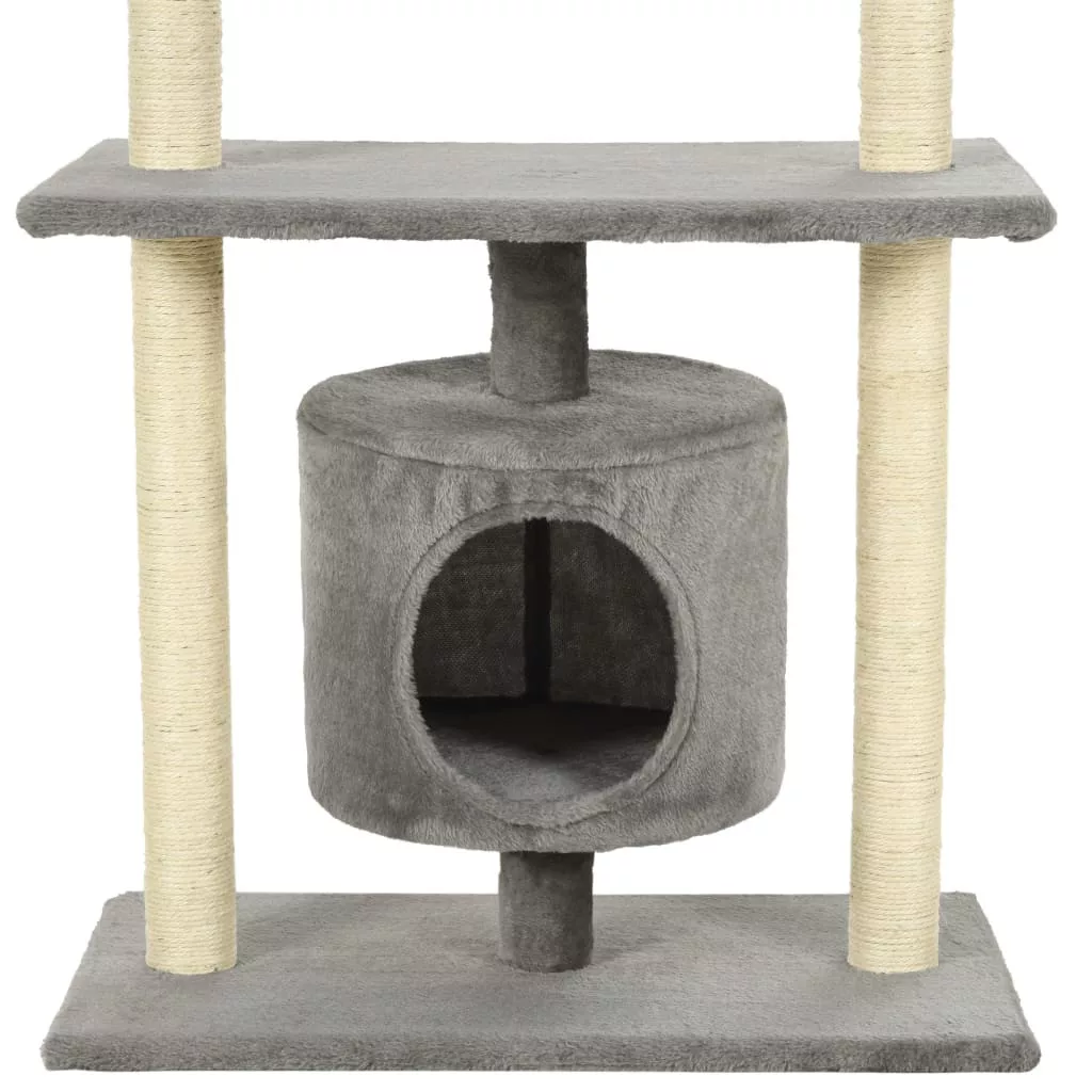 Szőrös kis kedvencei élesíthetik a karmukat a szizálkötéllel körbetekert kaparófákon, melyeken egészséges módon kiélhetik kaparóösztönüket. Élvezni fogják, ahogy kergethetik egymást, miközben fel-le ugrálnak ezen a szórakoztató játszóközponton. A macskabútor tetején van egy lógó játék, amely leköti a kíváncsi macskákat. Ha kijátszották magukat, kis barátai imádni fognak a felső emelvényeken pihenni, ahonnan jobban megfigyelhetik környezetüket. A hangulatos házikóban akár el is bújhatnak, hogy szundítsanak egyet.