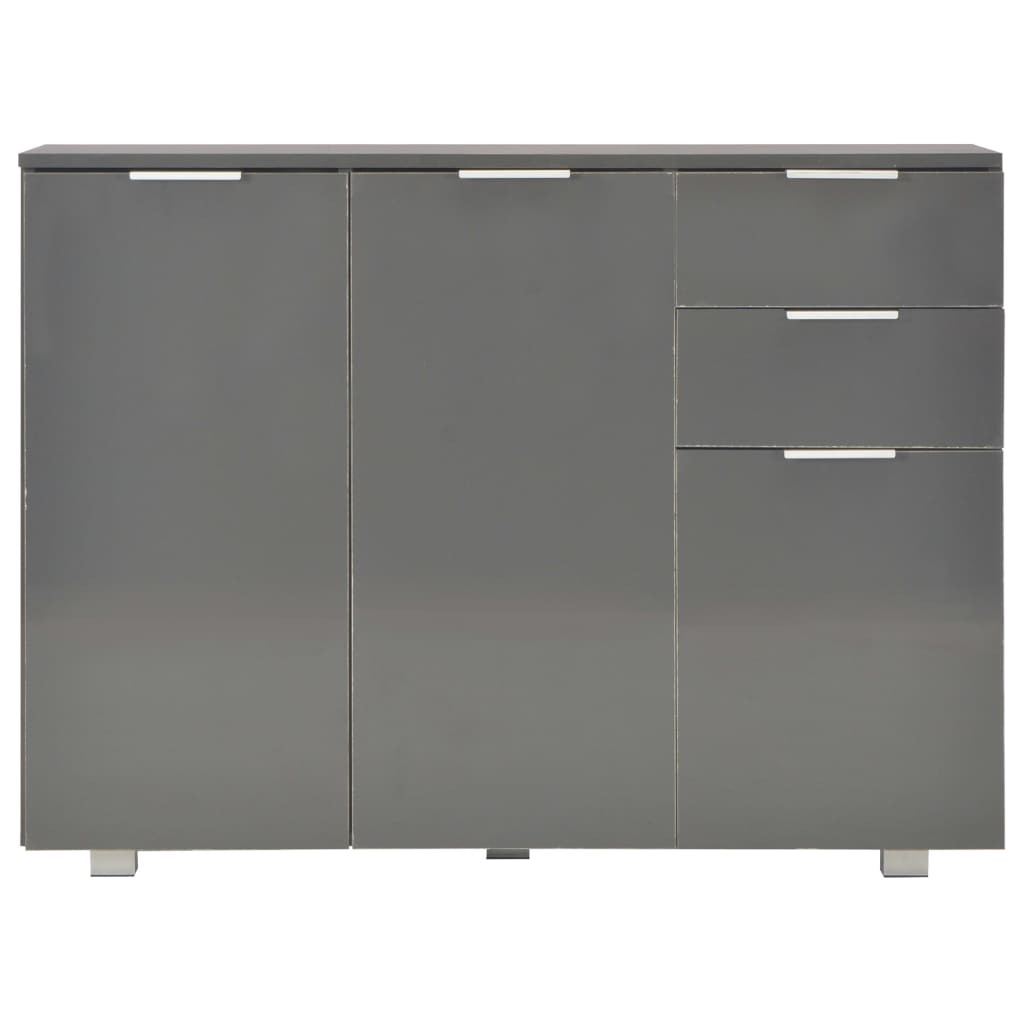 A magasfényű fehér felületű, szerelt fából készült fiókos szekrény kifinomult megjelenést kölcsönöz, valamint rendkívül stabil és tartós. Ezenkívül a 2 fiókkal és 3 ajtóval felszerelt tálalószekrény bőséges tárolóhelyet biztosít különféle tárgyak számára, így a szoba rendezett marad. Ez a magasfényű tárolószekrény könnyen tisztítható. Elegáns tálalószekrényünkkel új szintre emelheti lakberendezését!