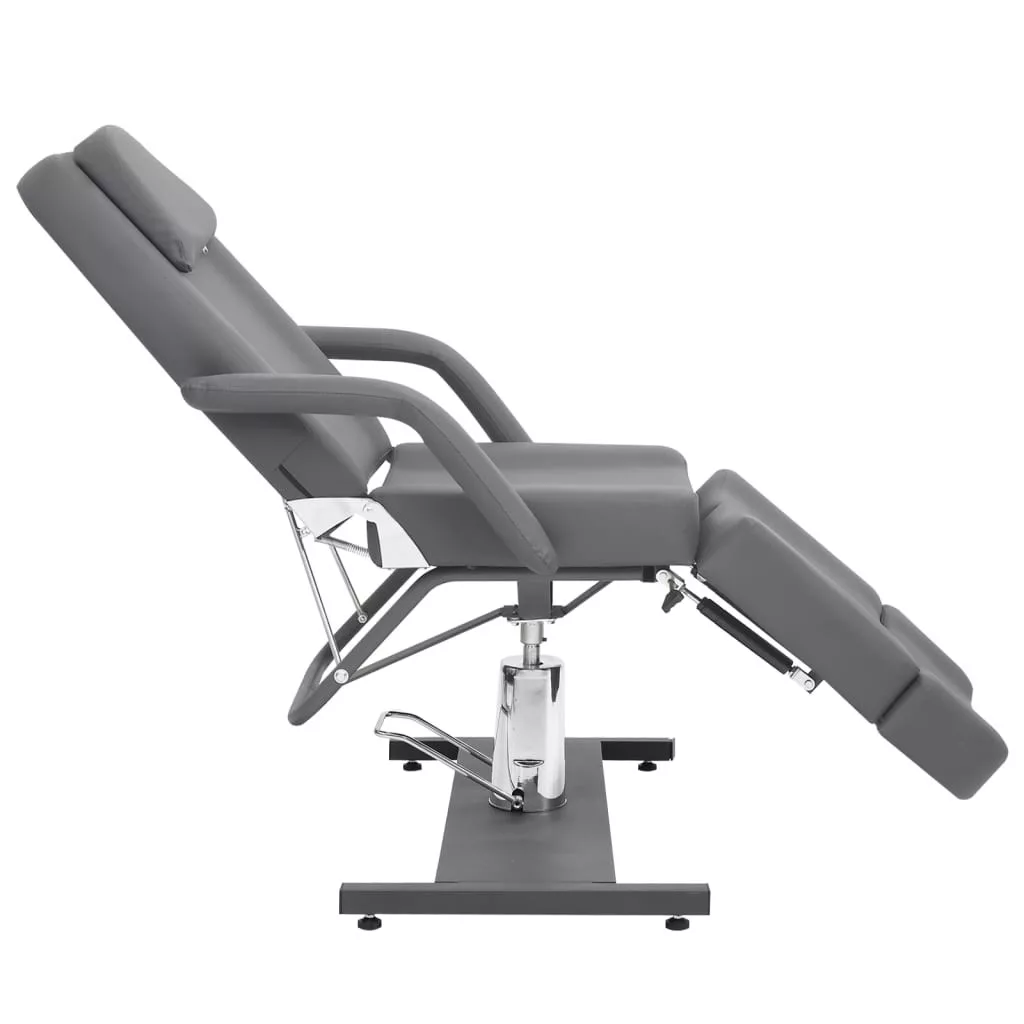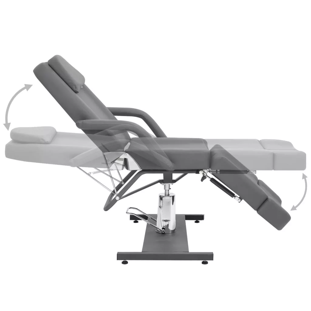 A műbőr kárpitozással ellátott kozmetikai ágy könnyen tisztítható és pazar megjelenést biztosít. A vastagon párnázott és állítható háttámlának köszönhetően a szék nagyon kényelmes, a vastalpnak köszönhetően pedig stabil. A háttámla és a lábtartók külön-külön különböző pozícióban rögzíthetők. A lábtartók egymástól függetlenül is rögzíthetők, a kartámaszok pedig igény szerint eltávolíthatók. Ez a kezelőszék a rugalmasság érdekében 360 fokban forgatható.