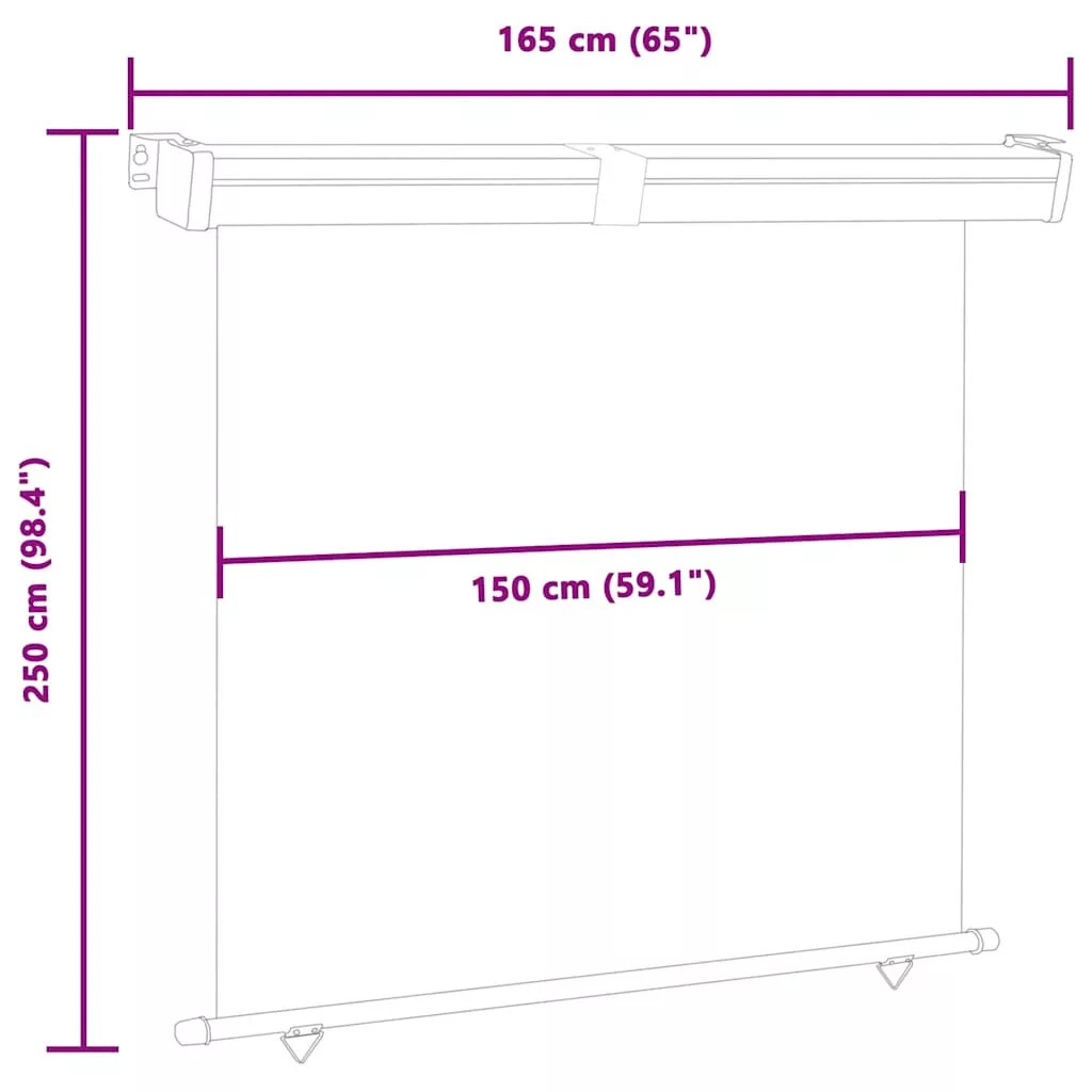 A napellenző UV- és szakadásálló poliészterből készült. Az alumínium henger sima gördülést biztosít. Önzáró funkcióval rendelkezik, így bárhol megállítható. Hosszúsága 250 cm-ig állítható. A napellenző az alsó háromszög alakú gyűrűk meghúzásával automatikusan visszatekeredik az acélkazettába. Ezenkívül ezt a függőleges erkély napellenzőt saját igényeinek megfelelően a falra vagy akár a mennyezetre is rögzítheti.